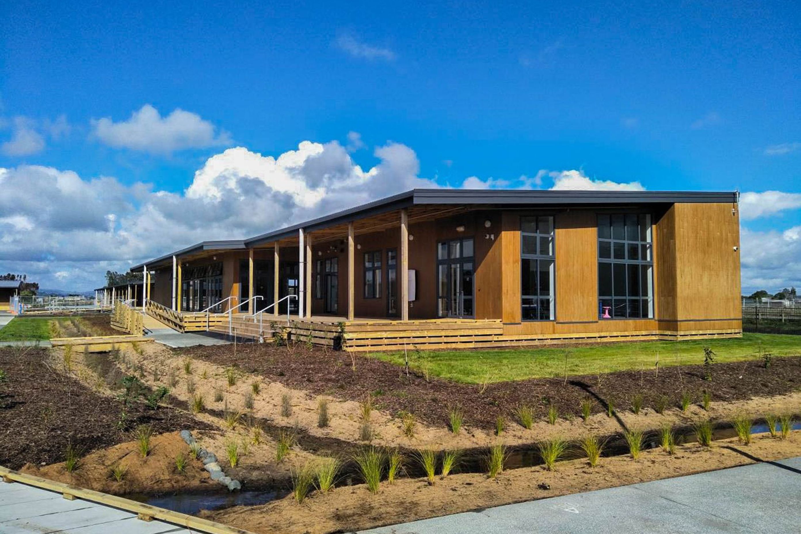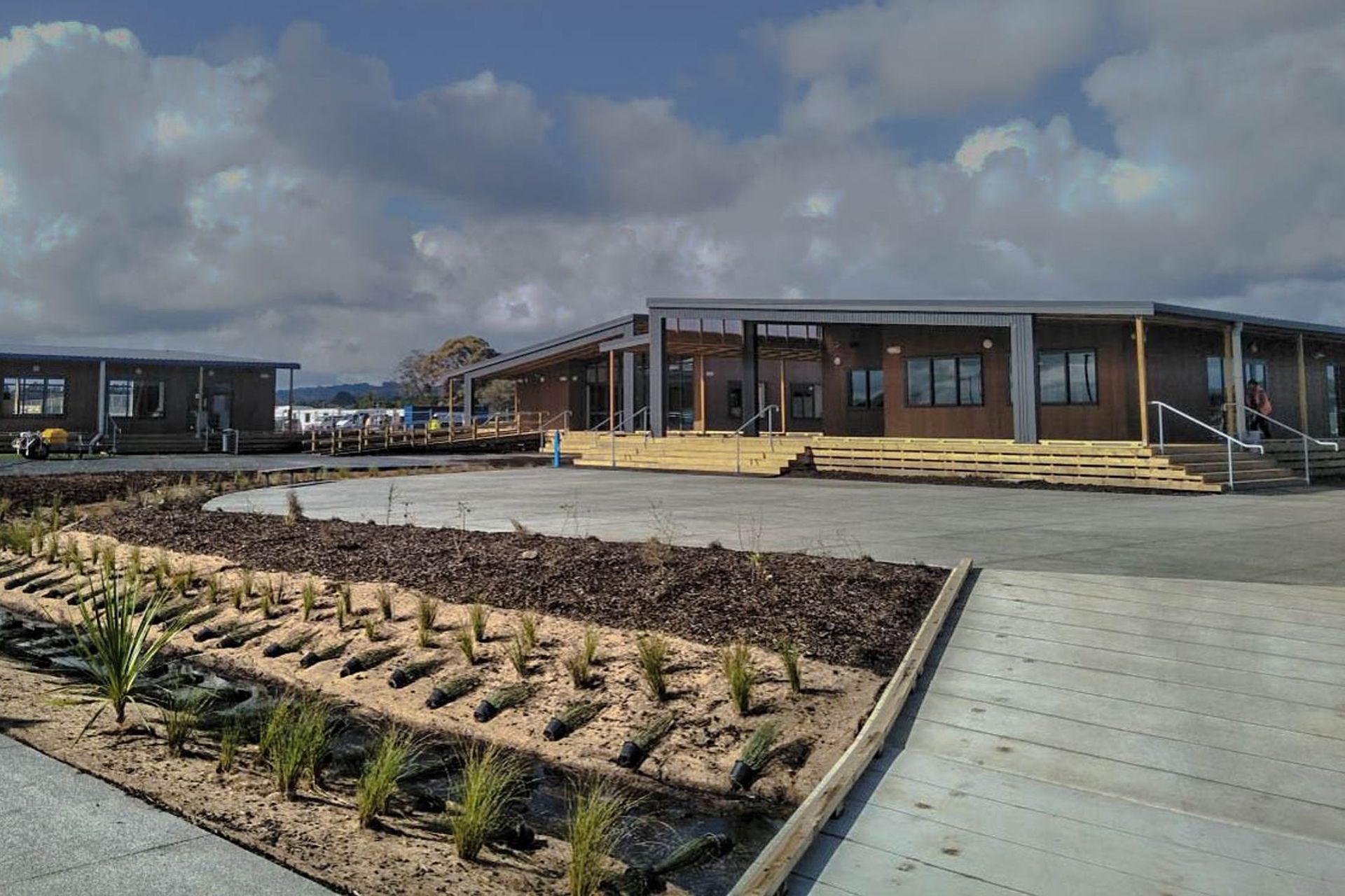 ArchiPro Project Summary - Innovative engineering solutions for Kauri Flat School, featuring a sustainable stormwater management system and collaborative structural design to address challenging ground conditions in Takanini, Auckland.