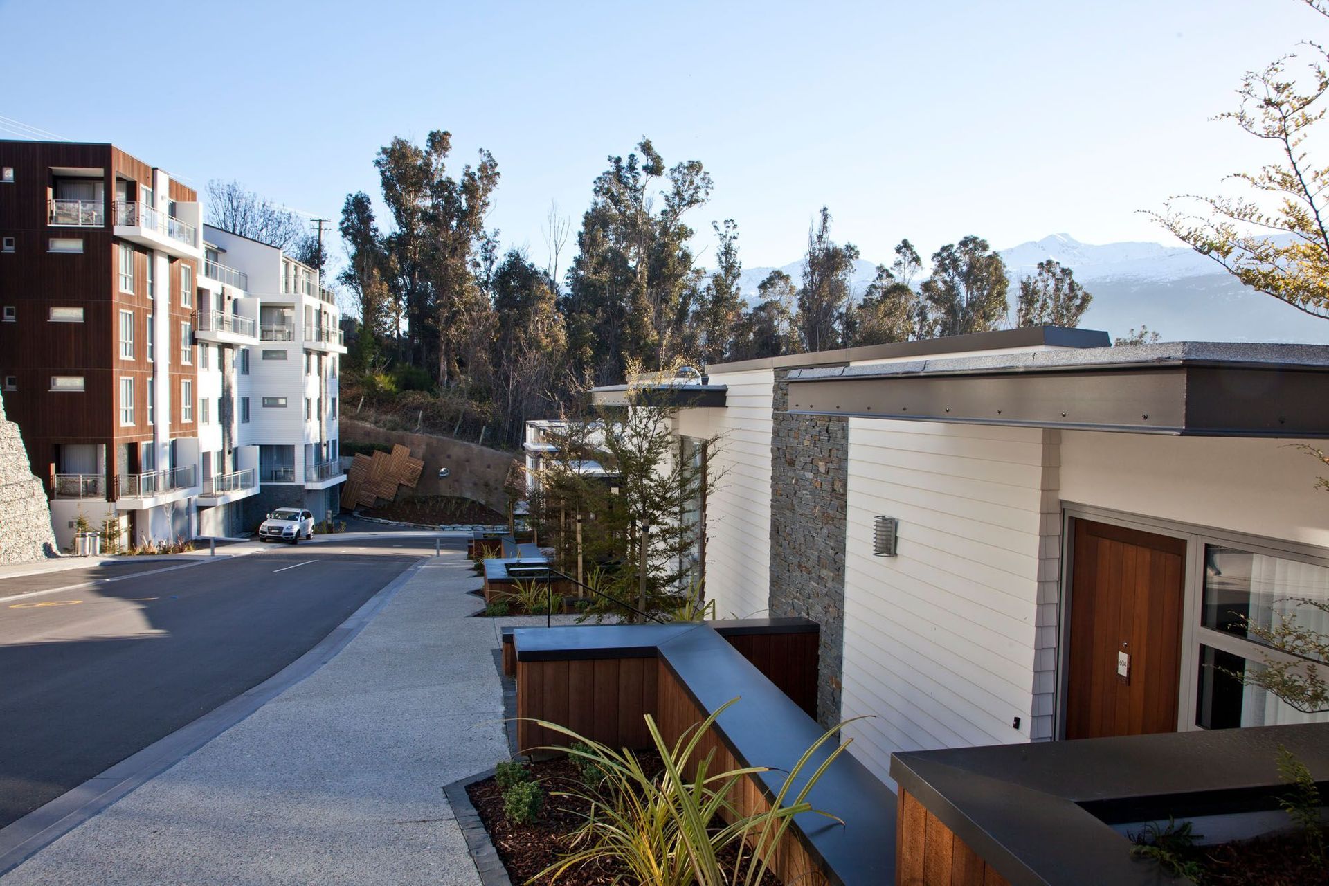 ArchiPro Project Summary - Kawarau Village by Peddle Thorp Architects offers luxurious living in the stunning Alps, blending sustainability with breathtaking views.