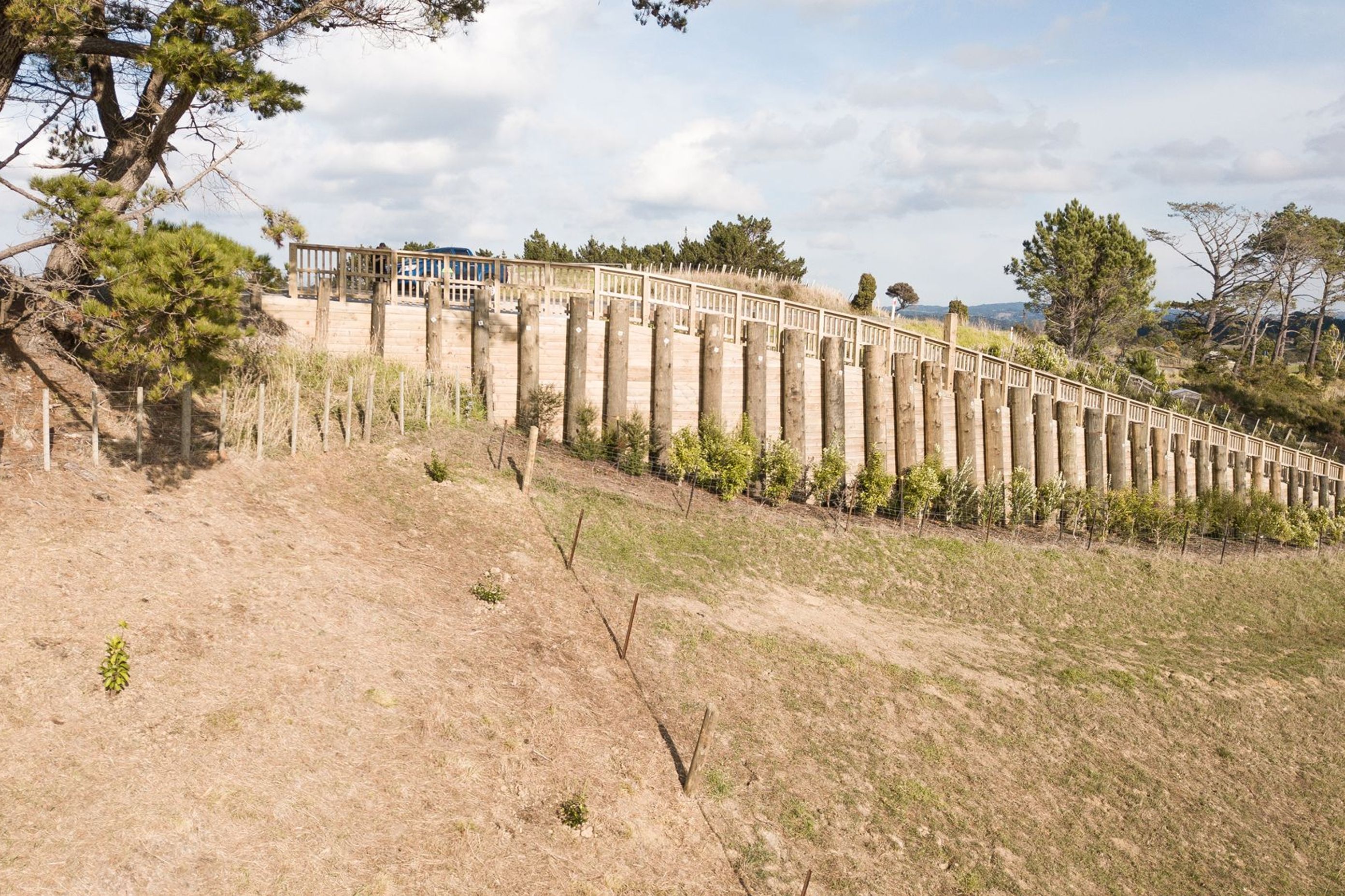 ArchiPro Project Summary - Development of two house sites and one shed site, featuring two engineered retaining walls, a right of way access, and tank installation for optimal functionality in the scenic Kawau Bay area.
