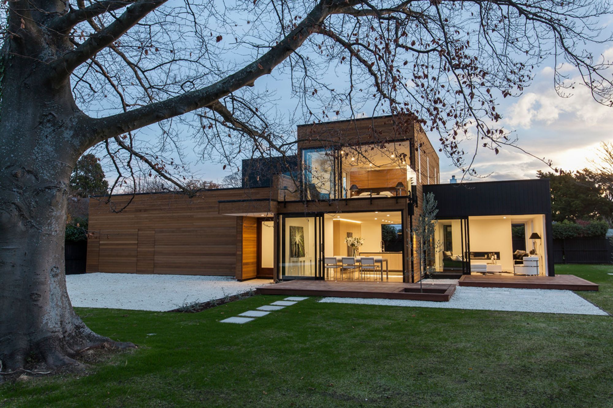 ArchiPro Project Summary - Contemporary timber-clad house in Christchurch featuring sustainable construction methods, extensive use of natural materials, and energy-efficient design for year-round comfort.