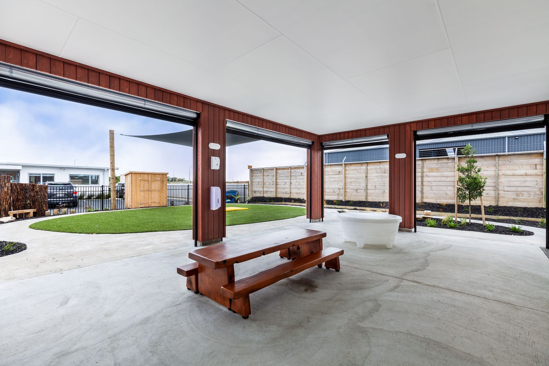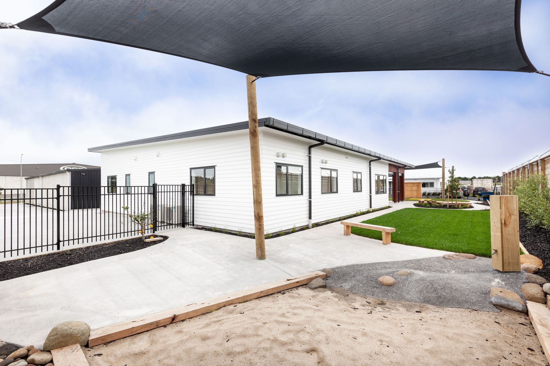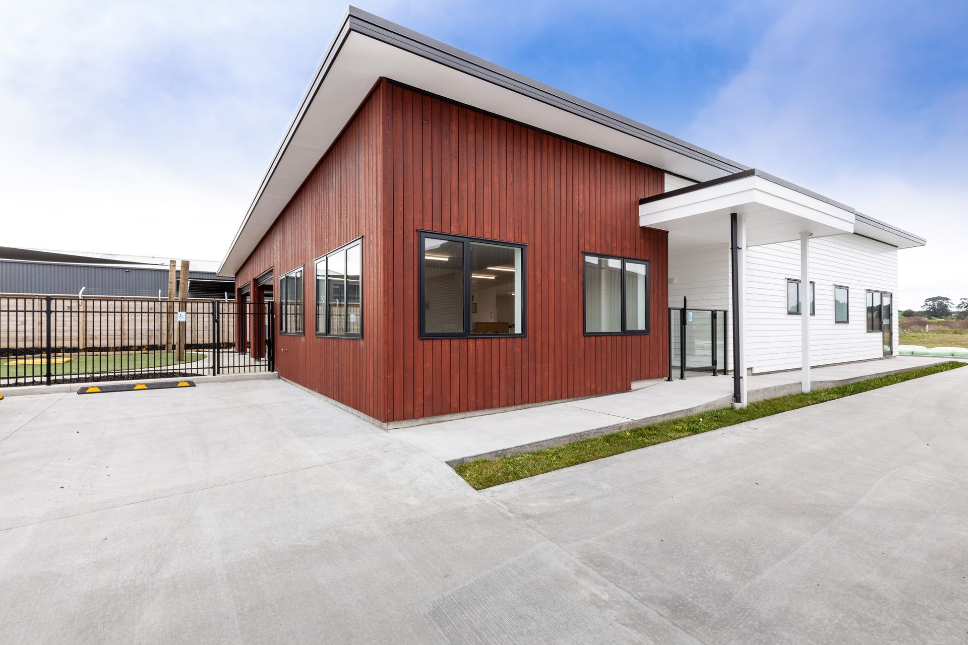 ArchiPro Project Summary - Purpose-built contemporary education facility designed for low maintenance, accommodating up to 50 children daily, featuring a newly added Junior Centre for 30 children aged 2 to 3.5 years, with a warm environment enhanced by timber elements.