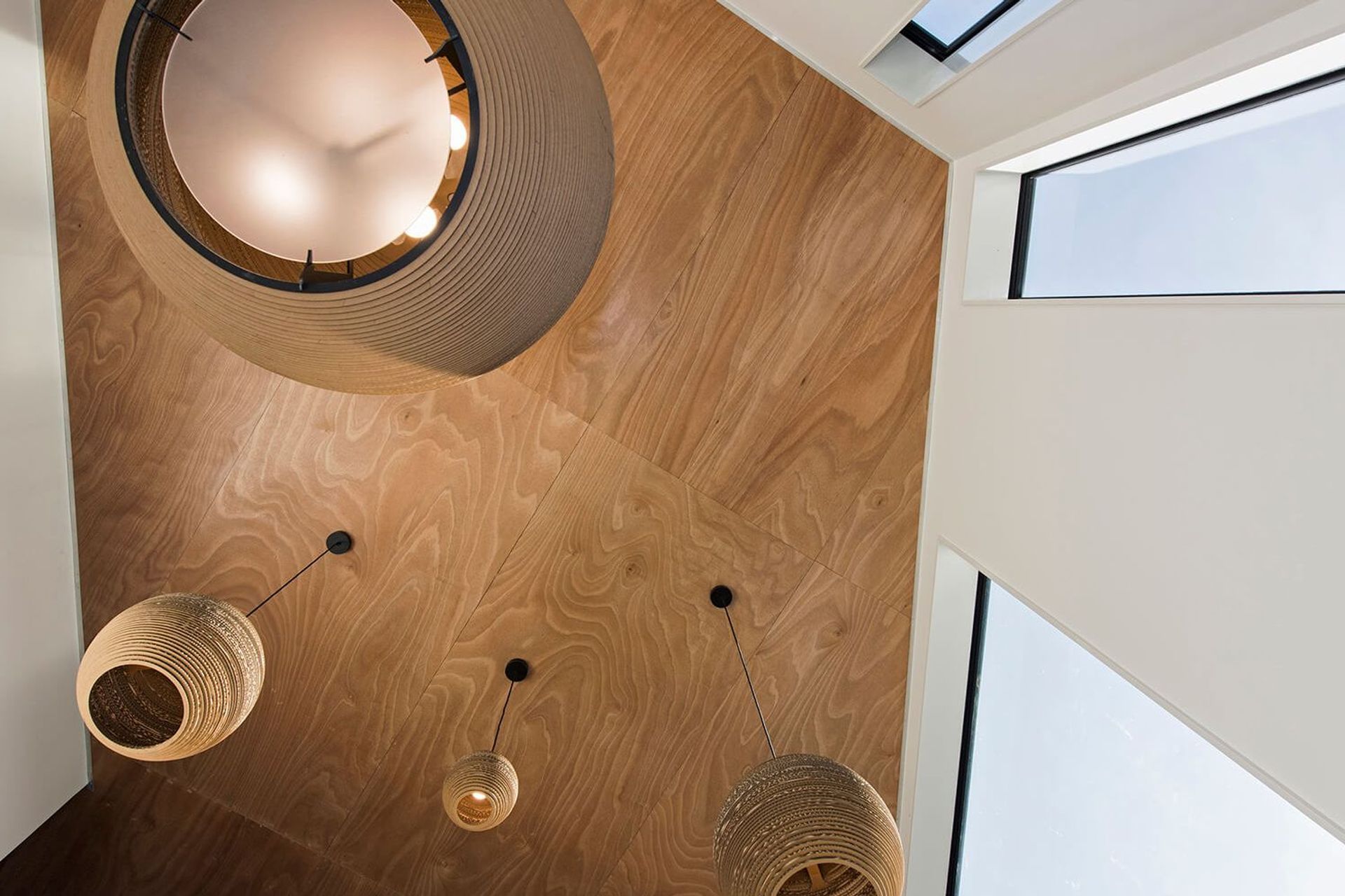 ArchiPro Project Summary - Innovative two-storey home in Mission Bay featuring sharply angled walls, custom copper detailing, and a blend of modern aesthetics with functional living spaces, completed in 2017 by Maxim Build under the architectural vision of Kent Dadson.