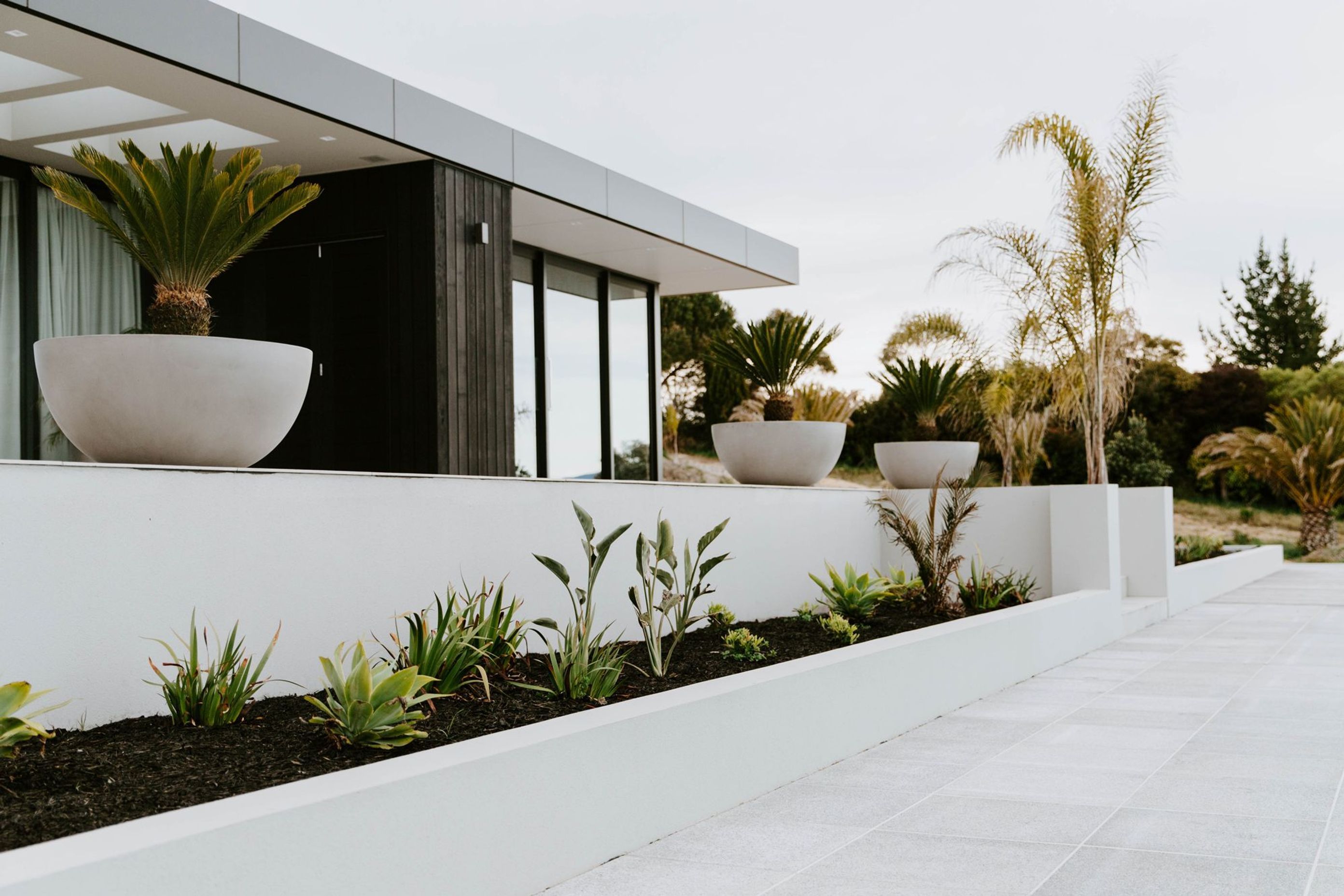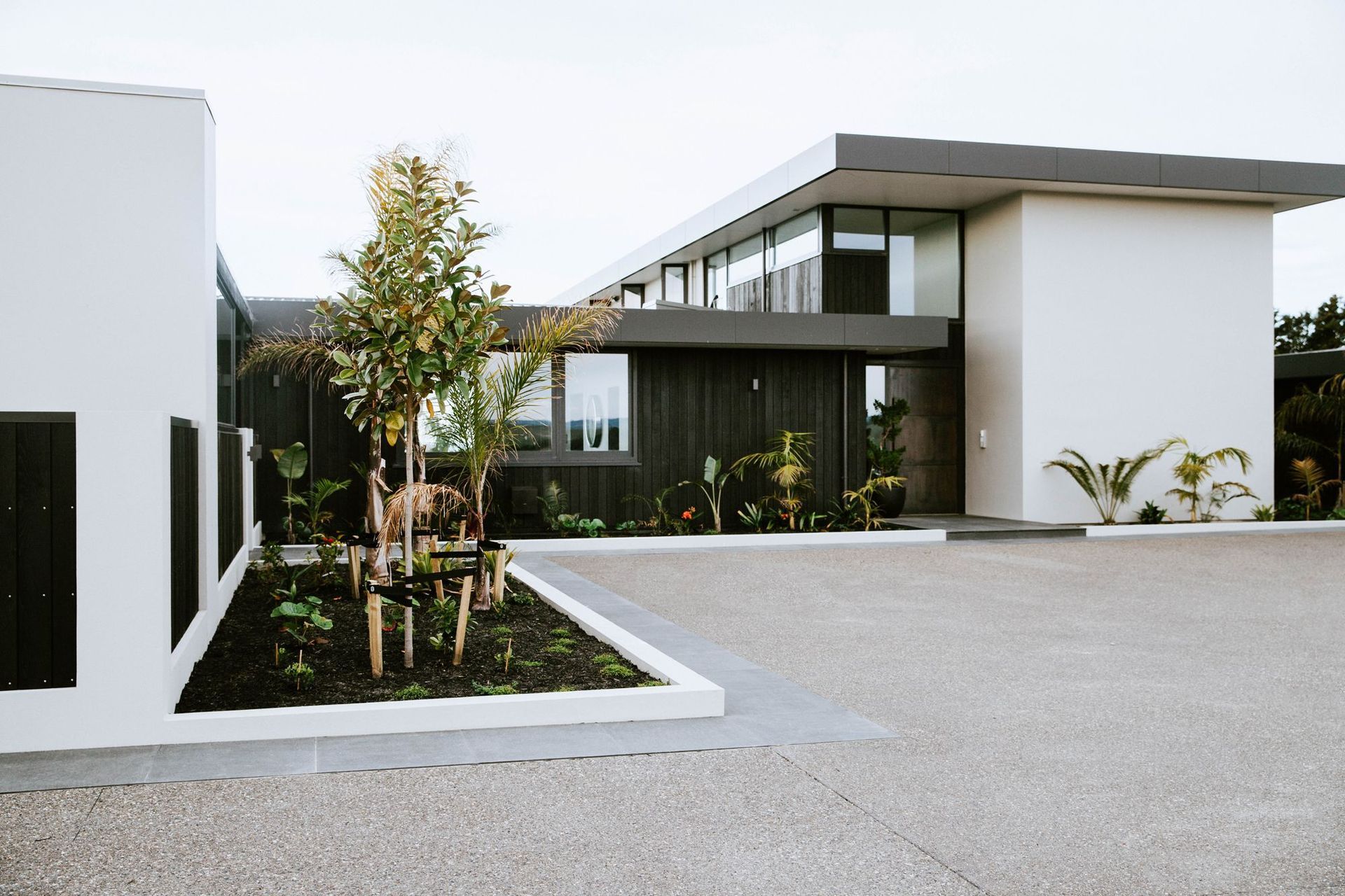 ArchiPro Project Summary - A stunning residence on the Kina Peninsula Cliffs, harmoniously blending architecture and landscape design with native New Zealand plants, celebrating the site's rural history, and utilizing a refined yet robust materials palette that enhances the coastal aesthetic.