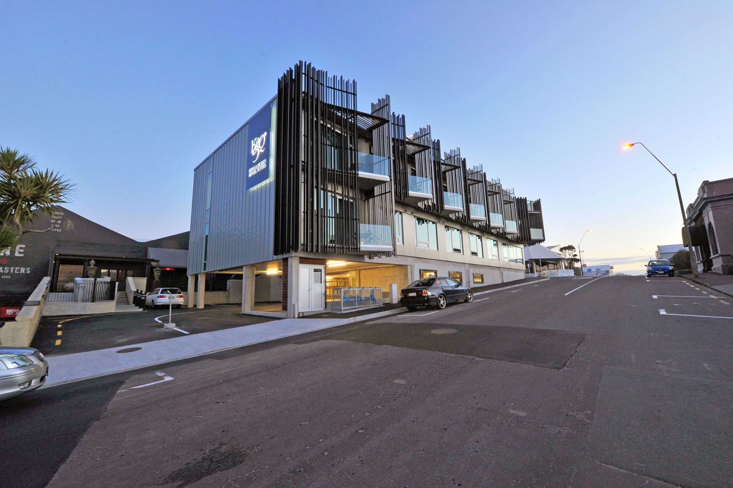 ArchiPro Project Summary - King & Queen Hotel Suites: A thoughtfully designed hotel in New Plymouth's West End Precinct, featuring an iconic vertical louvre screen for sun shading and privacy, harmoniously integrating with the historic context and enhancing the urban landscape.