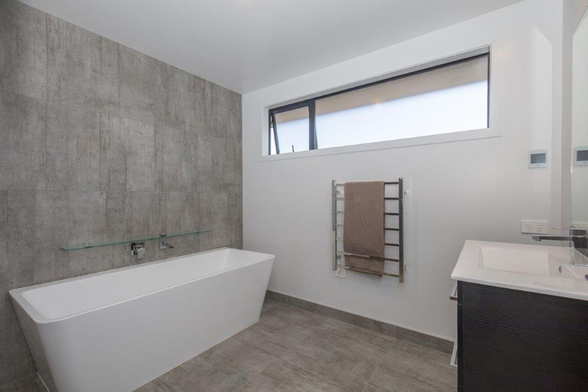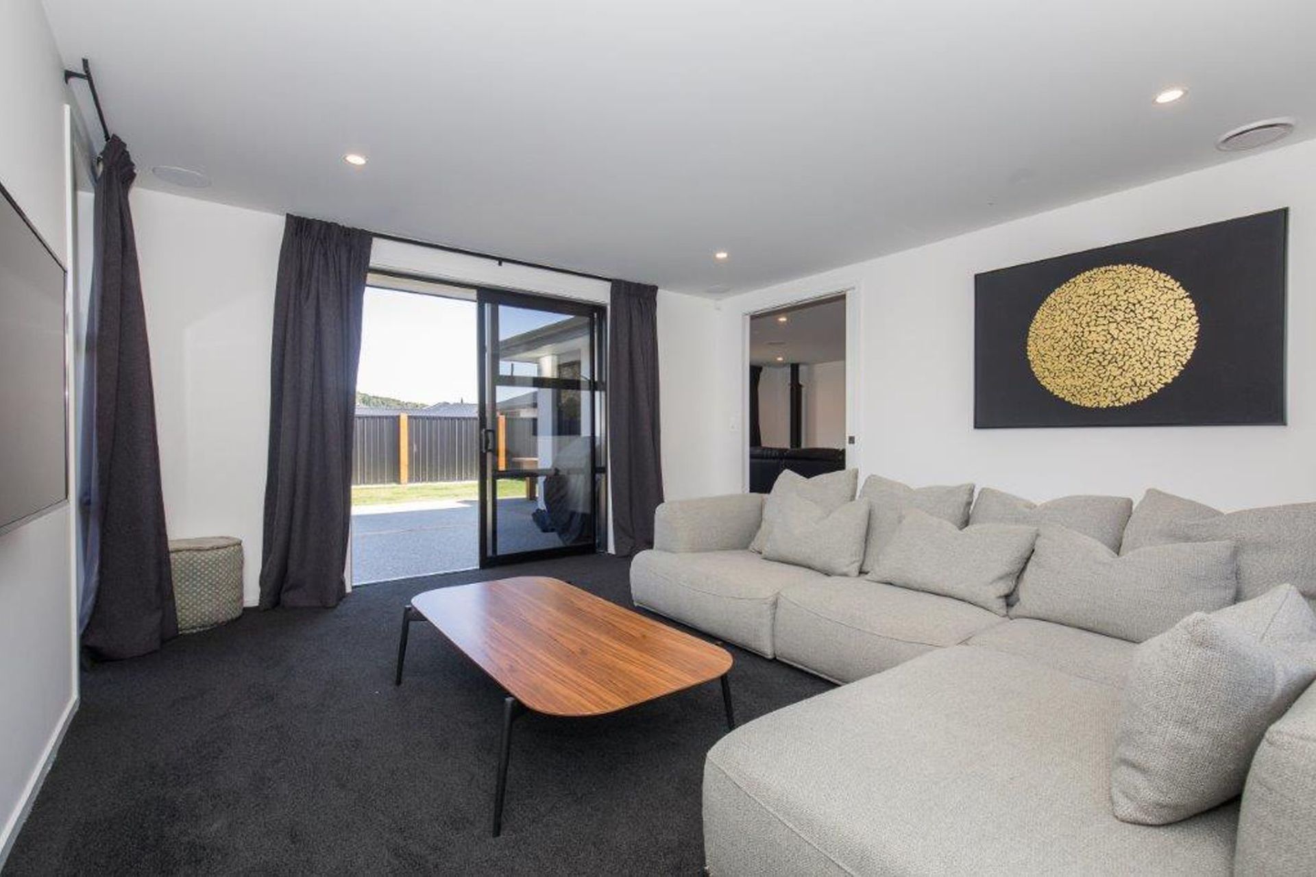 ArchiPro Project Summary - Spacious family residence featuring 5 bedrooms, 3 bathrooms, and 2 living areas, designed with sleek modern lines and a timeless monochrome palette, complemented by expansive sliding doors leading to a sun-filled patio.