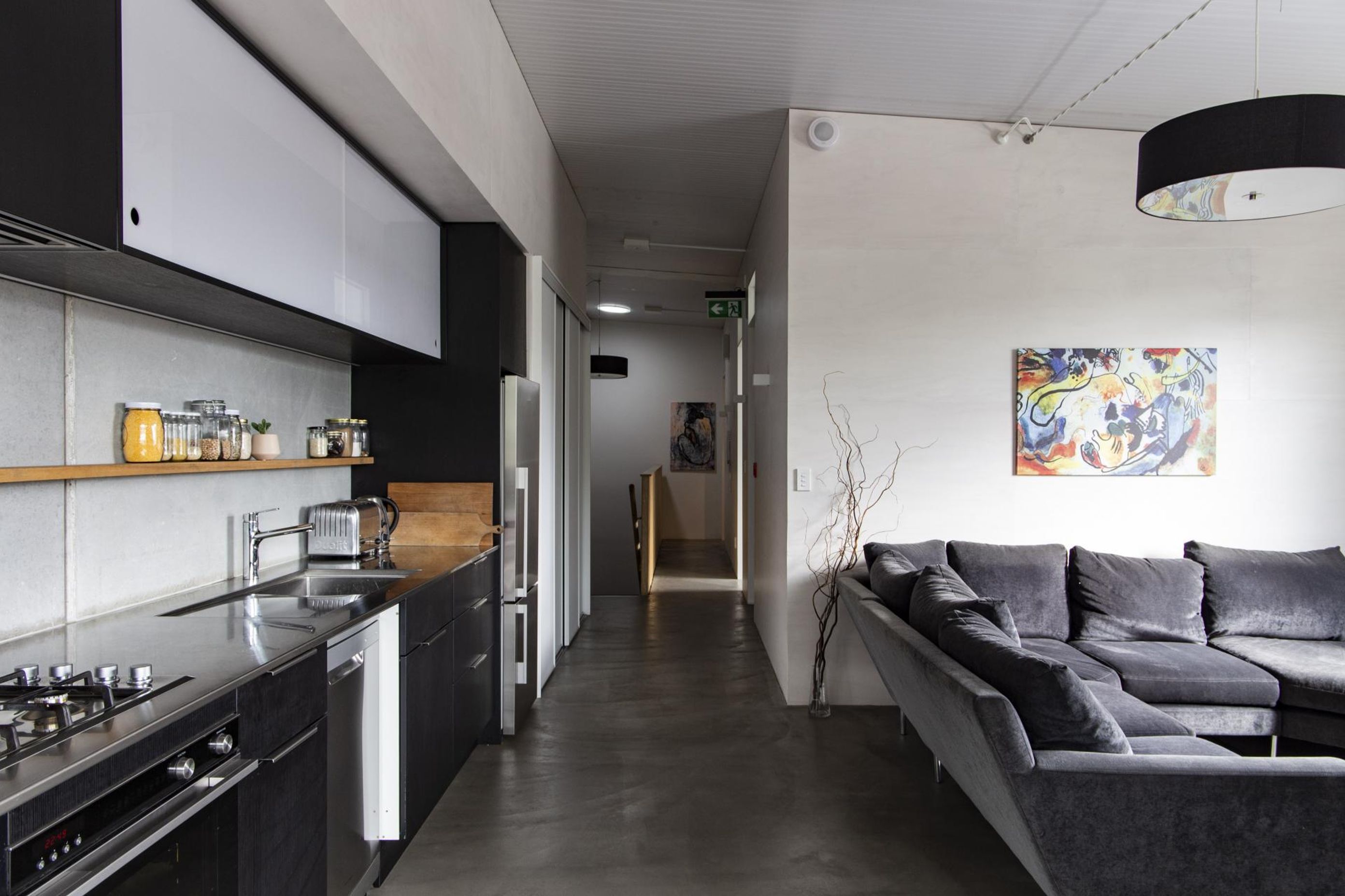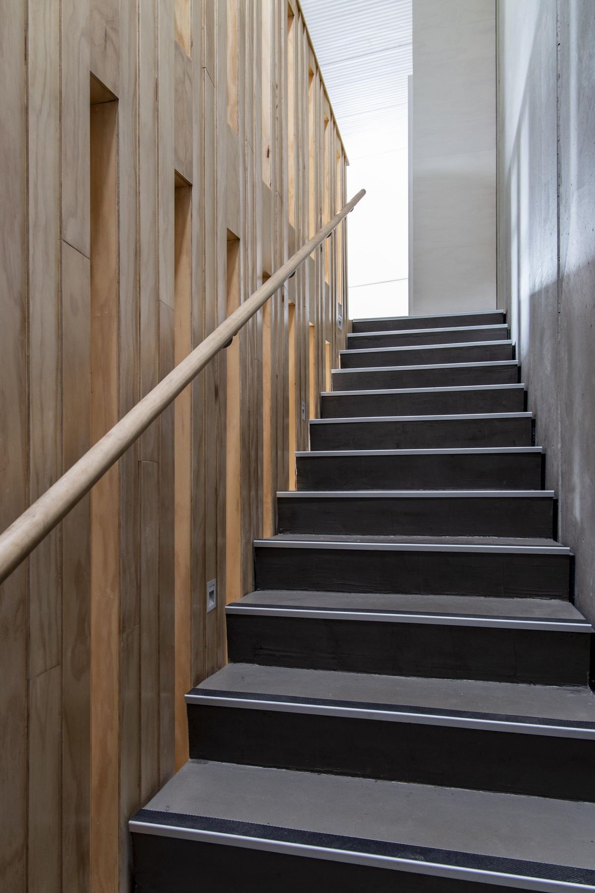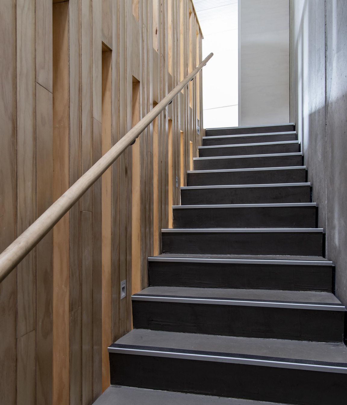 ArchiPro Project Summary - Contemporary urban apartment featuring a rainscreen facade, open spaces, and a striking insitu concrete and timber stairwell, designed by SGA for optimal light and airflow.