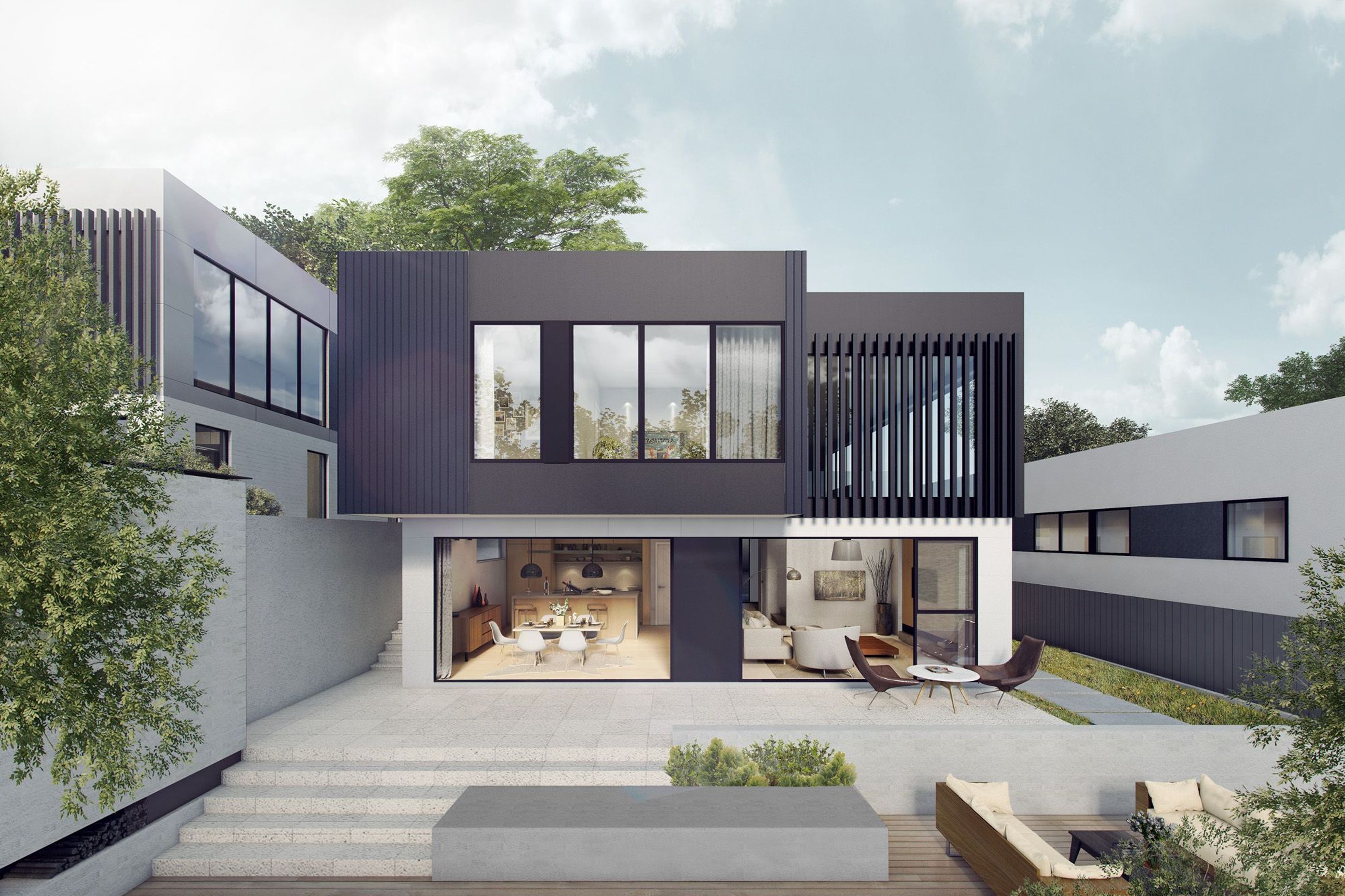 ArchiPro Project Summary - Modern six-unit high-end housing development in Mt Eden, completed in 2017, featuring 330m2 building footprints, exceptional indoor-outdoor flow, and large private gardens, all within close proximity to local amenities and Auckland Grammar zones.