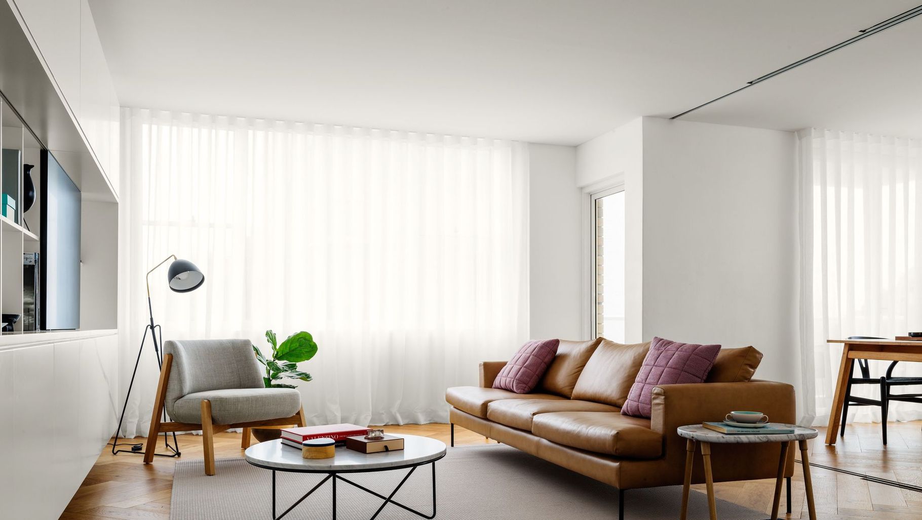ArchiPro Project Summary - A modern transformation of a 1960s apartment into a light-filled, elegant space with flexible living areas and refined finishes, featuring stunning views of Sydney Harbour and the city skyline.