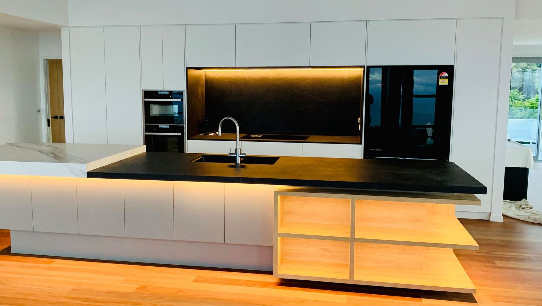 ArchiPro Project Summary - A stylish and functional kitchen and laundry space in Mangawhai, featuring wood flooring, modern appliances, and elegant design.