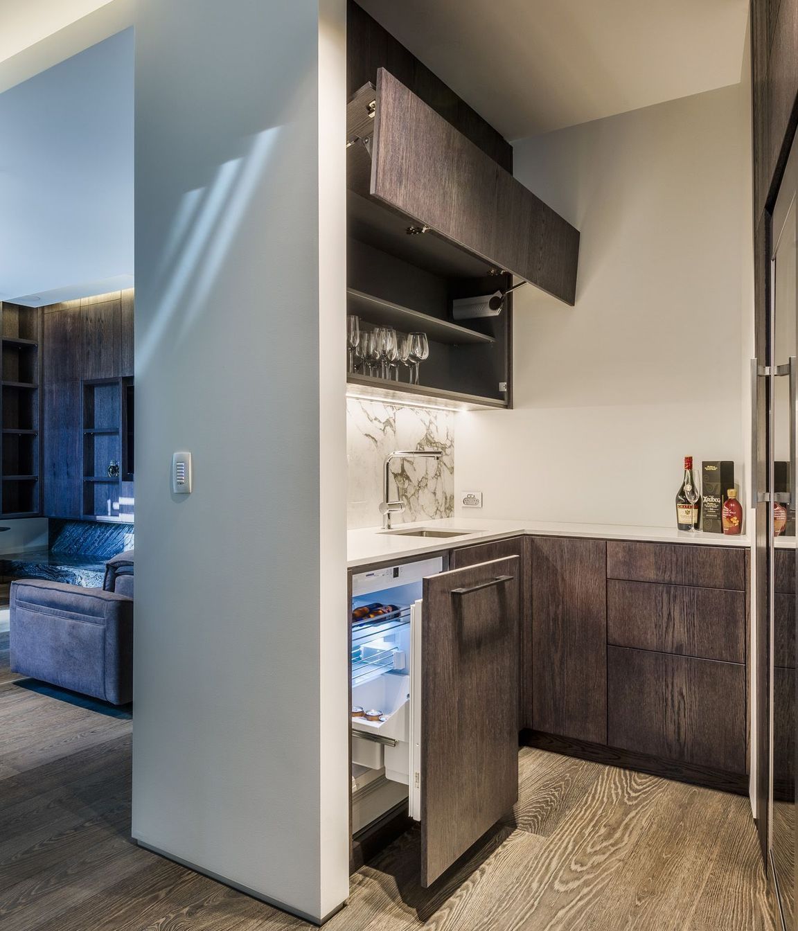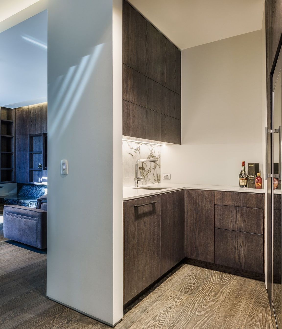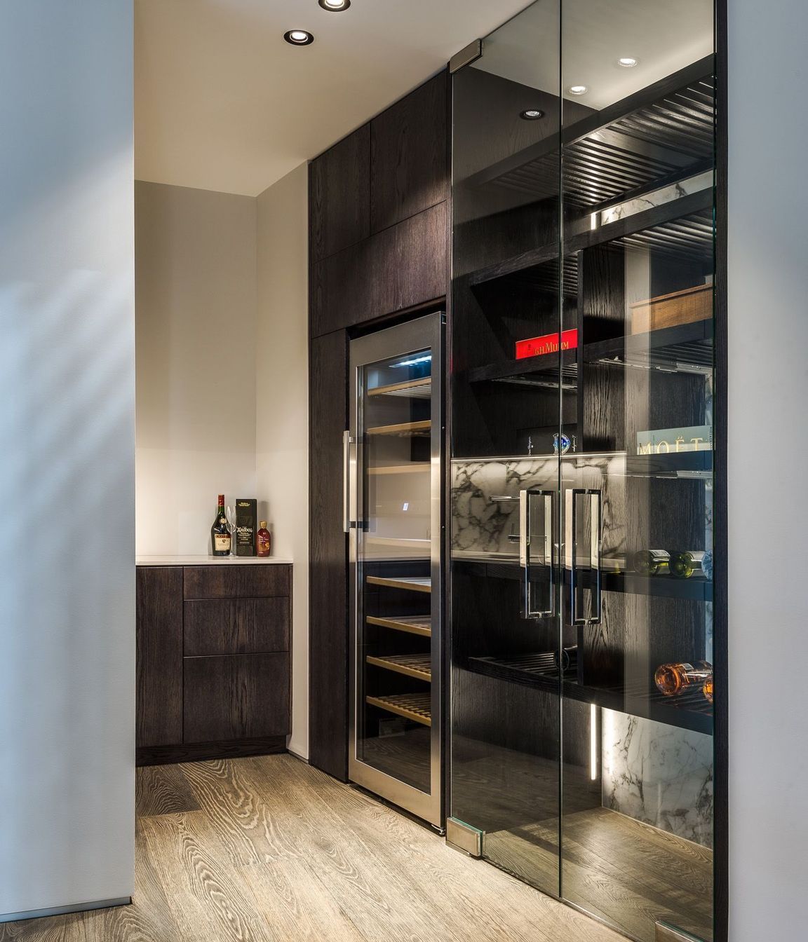 ArchiPro Project Summary - A luxurious kitchen designed by Vicki Andrews Design, featuring a stunning cantilevered island, sophisticated etched frosted glass fronts, and bold Arabescato marble, complemented by a spacious scullery and award-winning creative lighting.