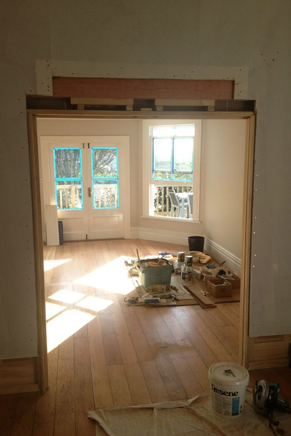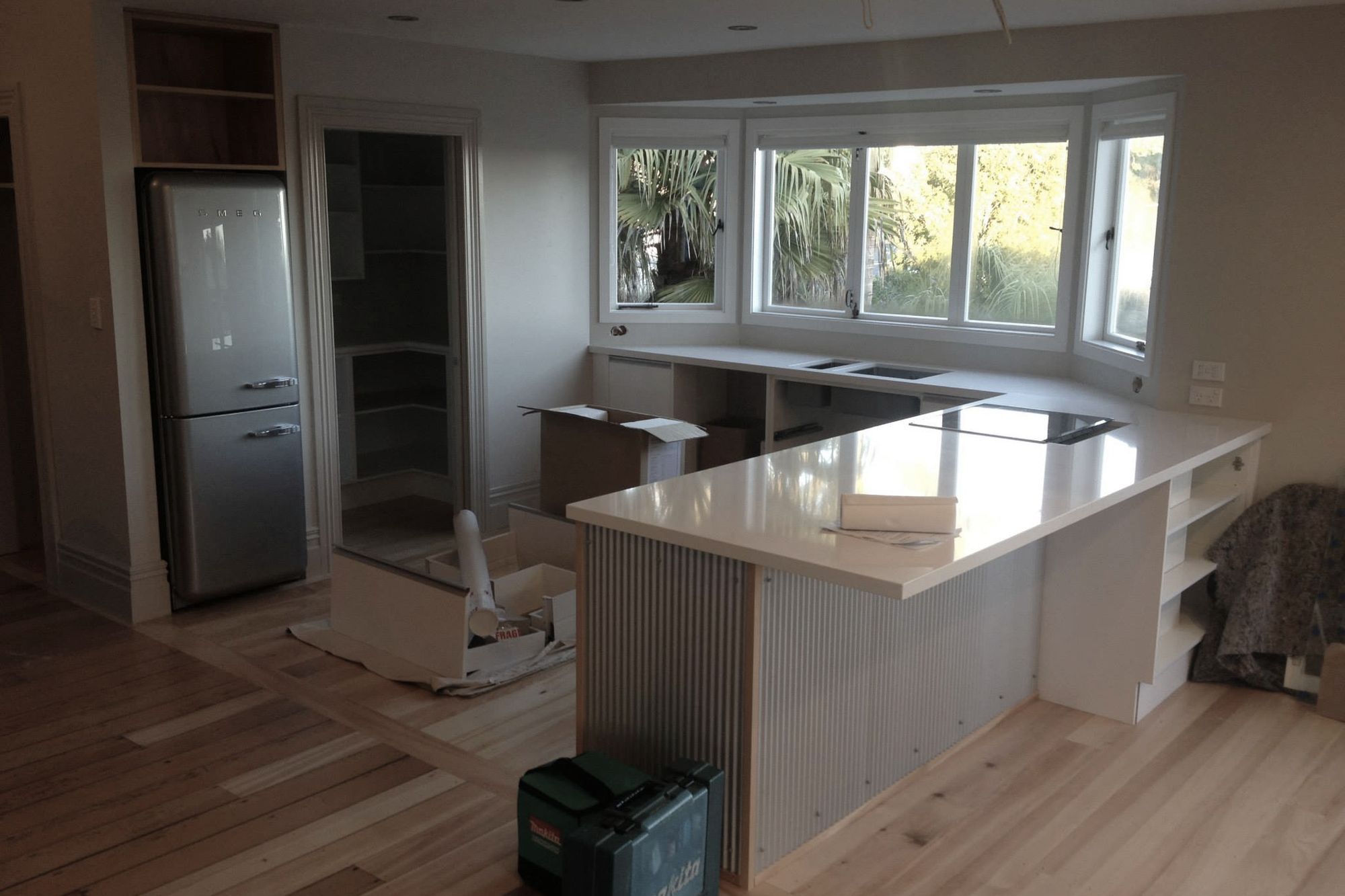 ArchiPro Project Summary - Kitchen renovation featuring a new cavity slider connecting the kitchen to the sitting room for enhanced space and functionality.