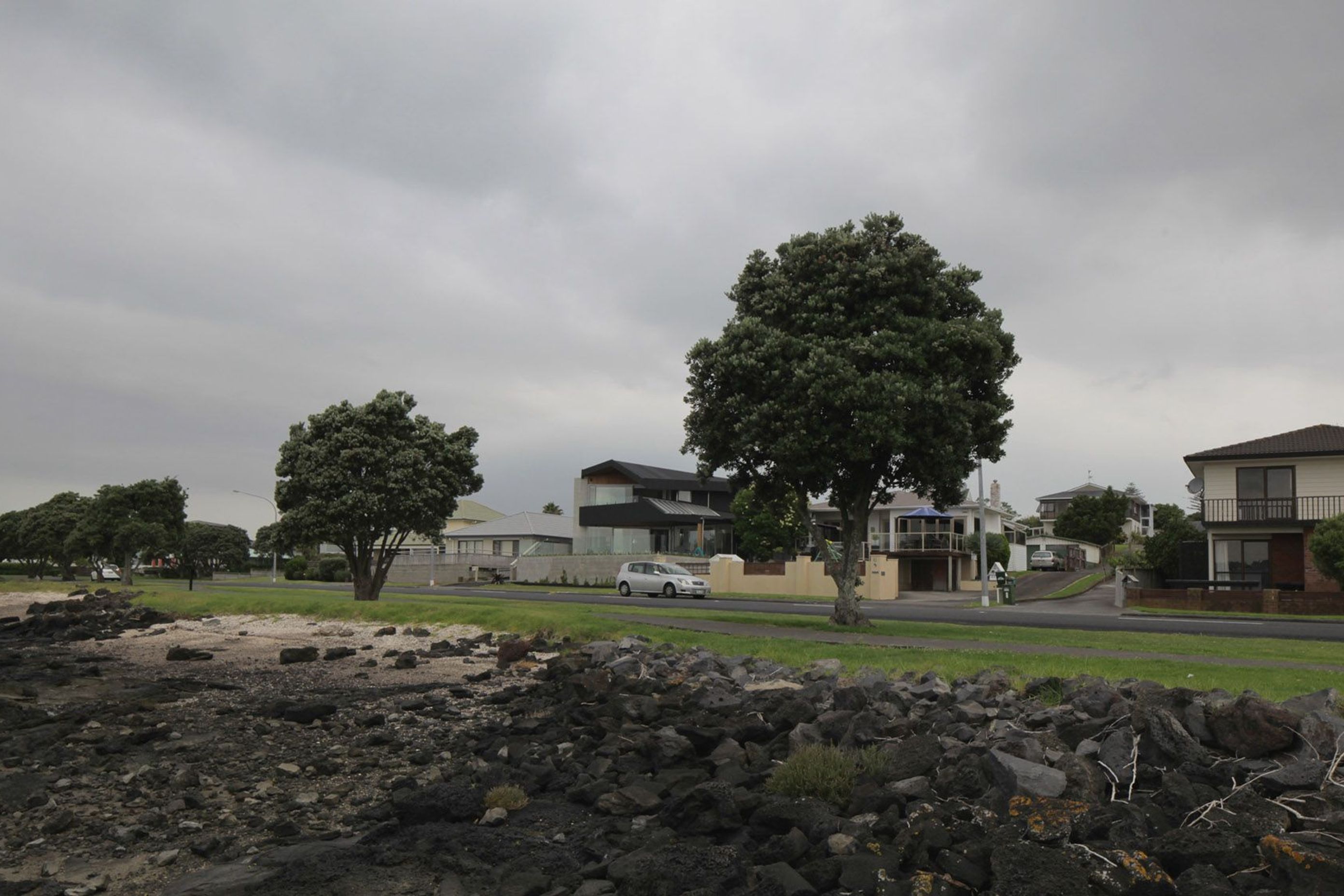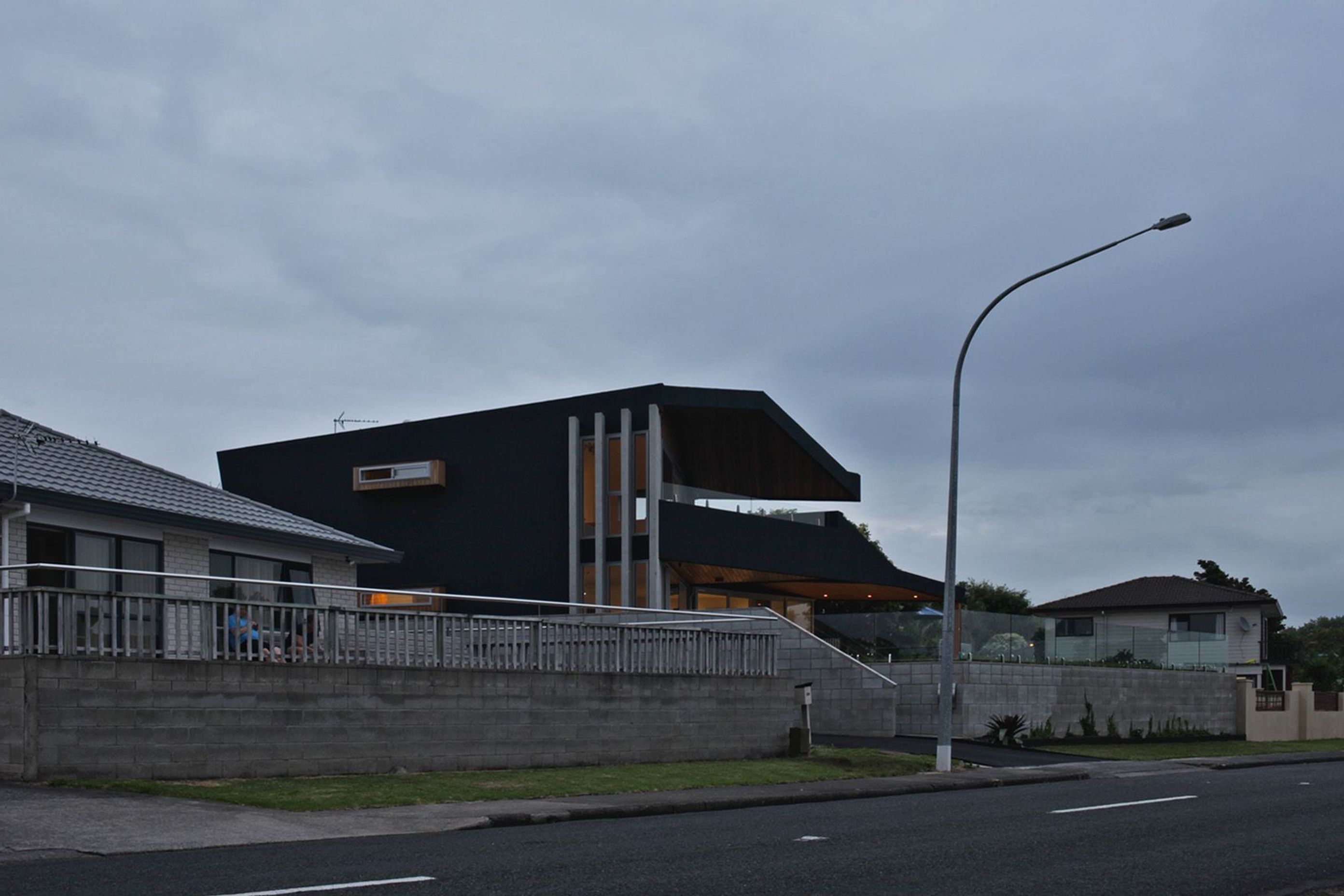 ArchiPro Project Summary - A striking residence at the edge of Manukau Harbour, featuring dramatic forms and courtyards that respond to the unique tidal landscape near Mangere Bridge.