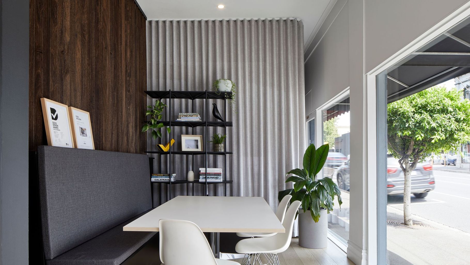 ArchiPro Project Summary - A contemporary design studio by Kirsten Johnstone Architecture, transformed from a heritage shop in Hawthorn, featuring innovative workspace solutions, engaging street interface, and a focus on residential aesthetics.
