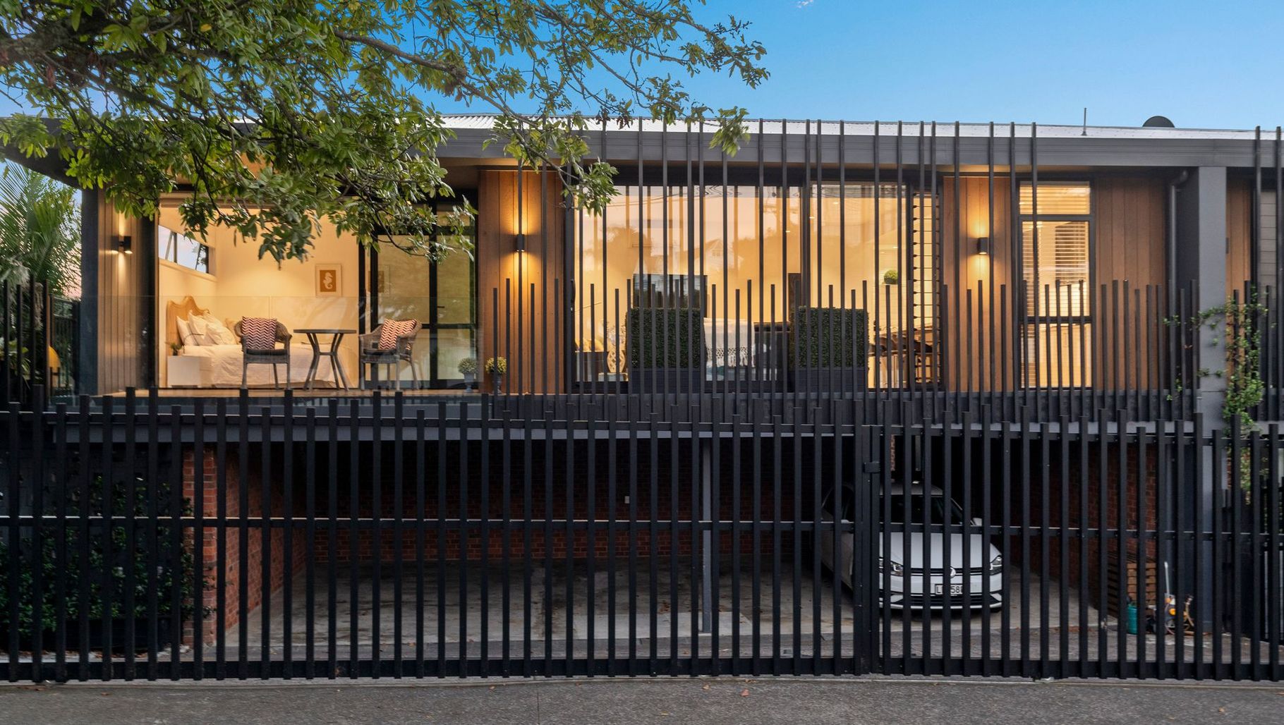 ArchiPro Project Summary - Contemporary Kohimarama Apartments revitalizing a 1960s structure with a blend of red brick, black NuWall, and cedar, featuring future-ready design elements for additional levels and stunning views of Rangitoto.