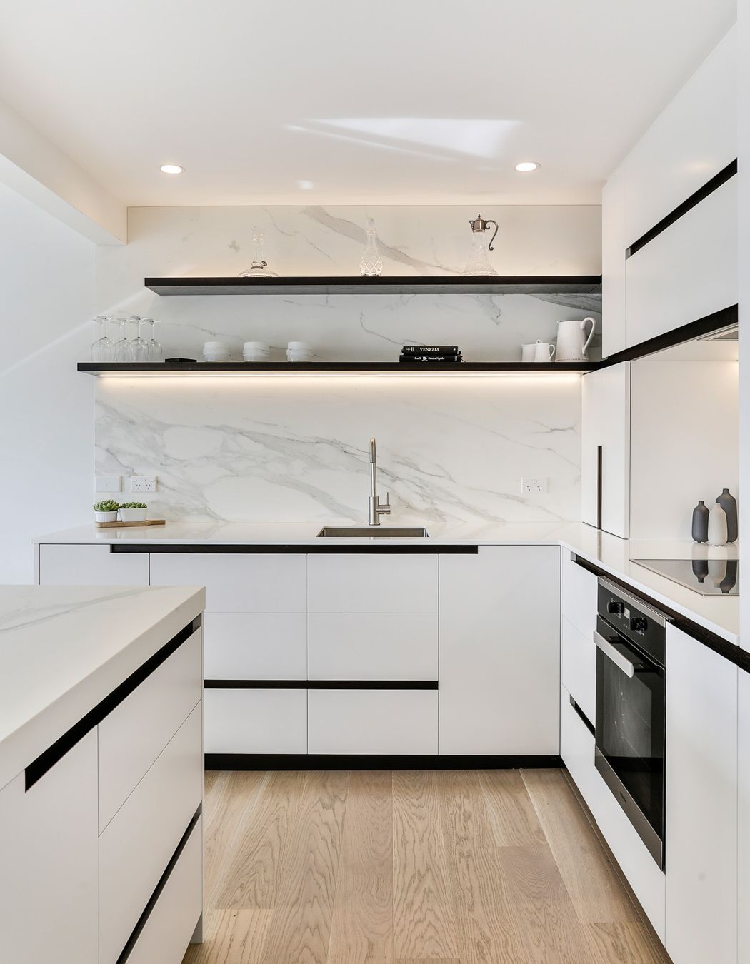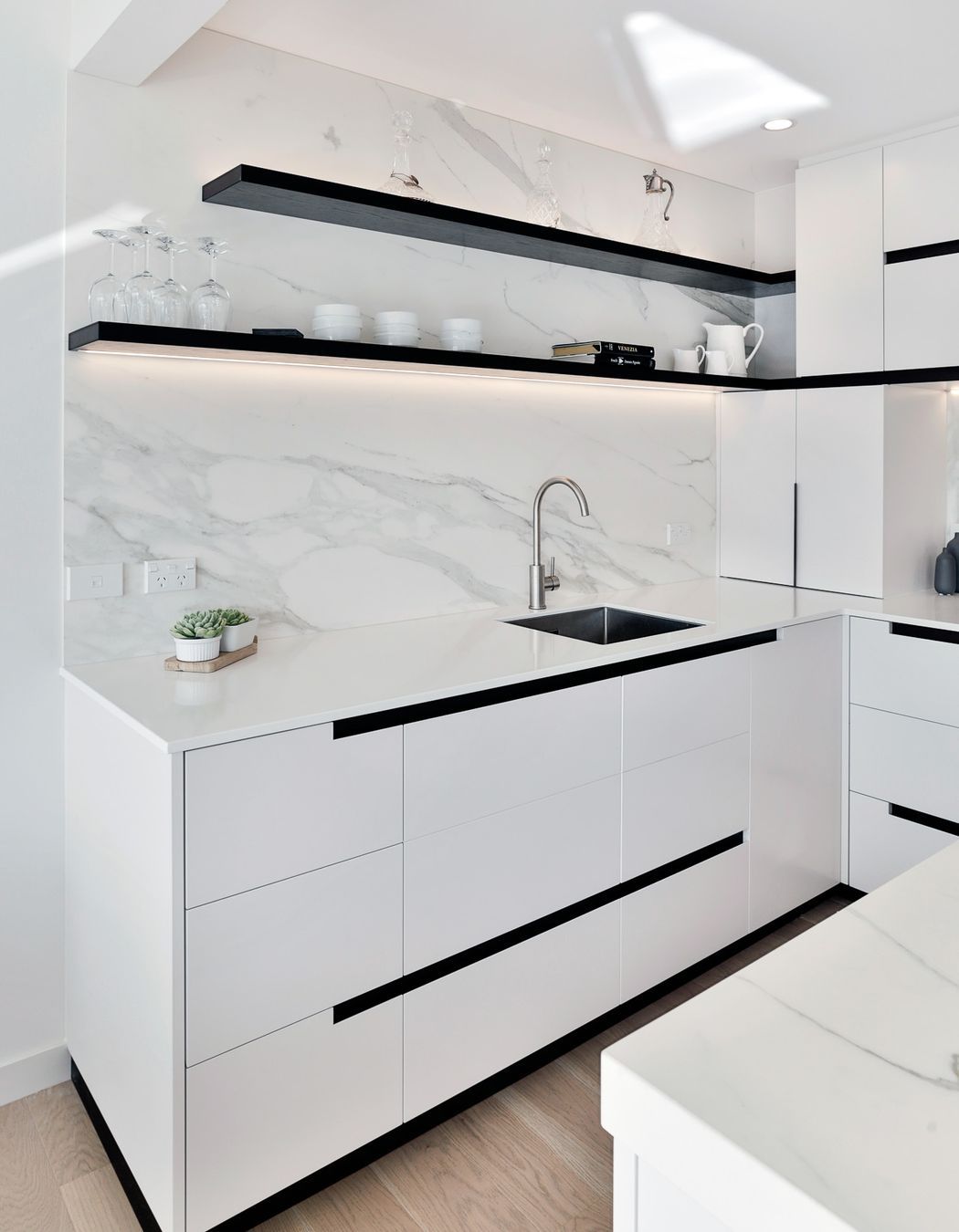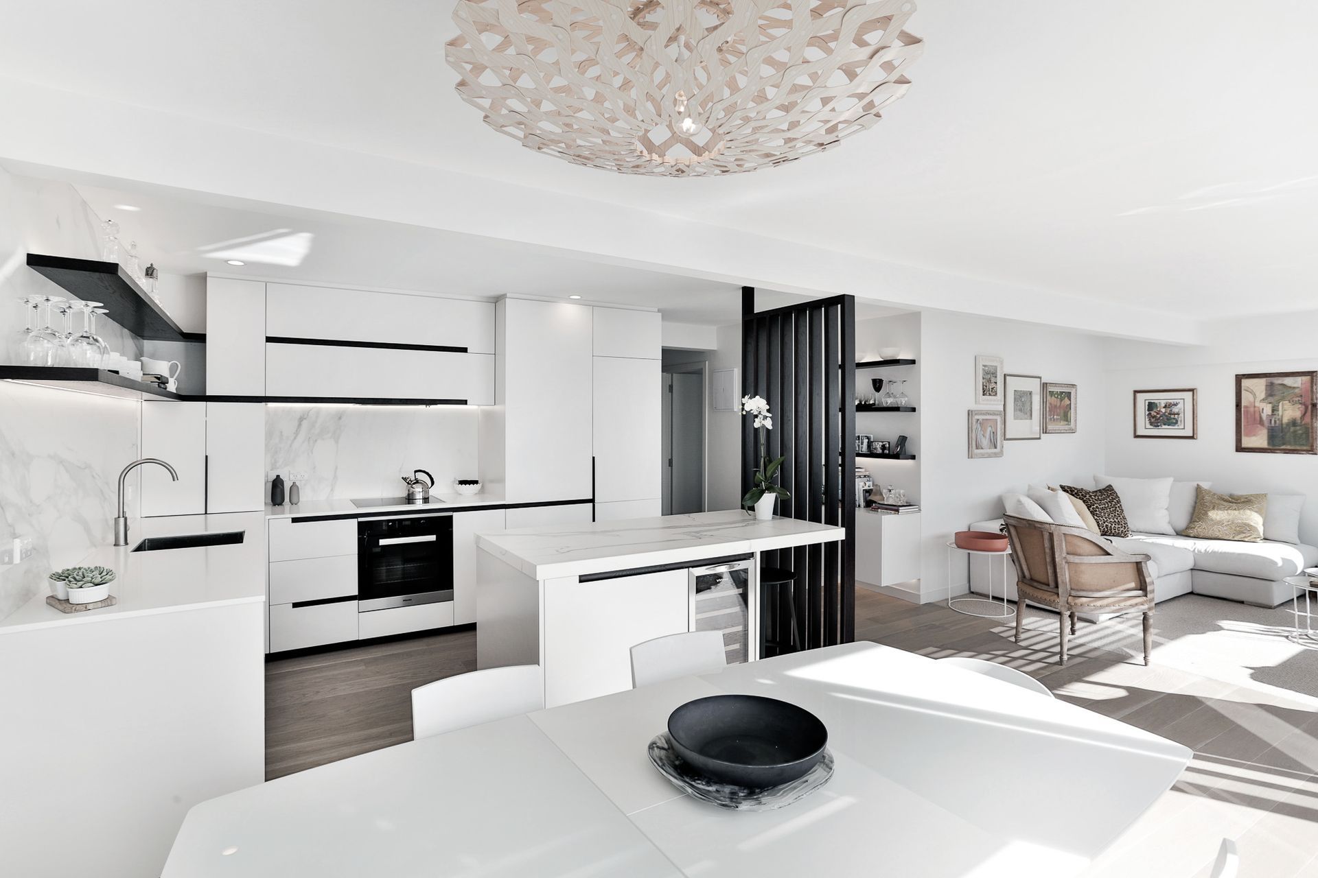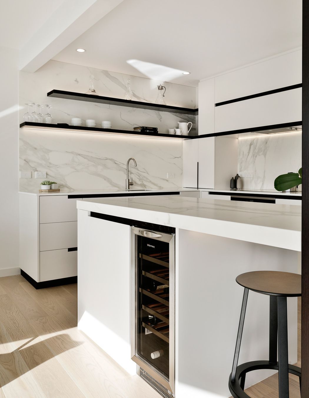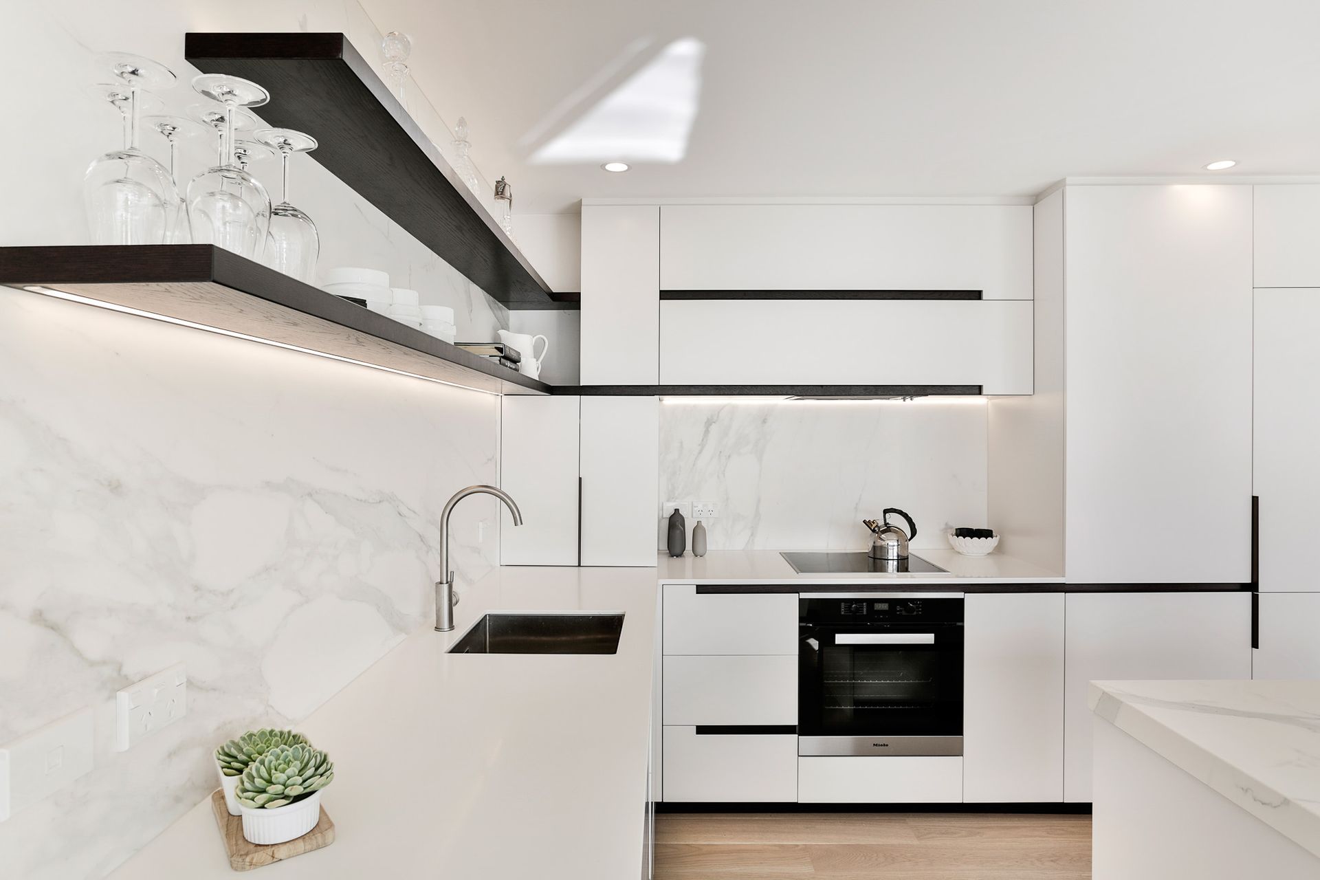 ArchiPro Project Summary - A beautifully designed kitchen and bathroom refurbishment in a compact Auckland apartment, featuring an open layout, integrated appliances, and a minimalistic material palette that enhances functionality and aesthetics while maximizing panoramic harbour views.
