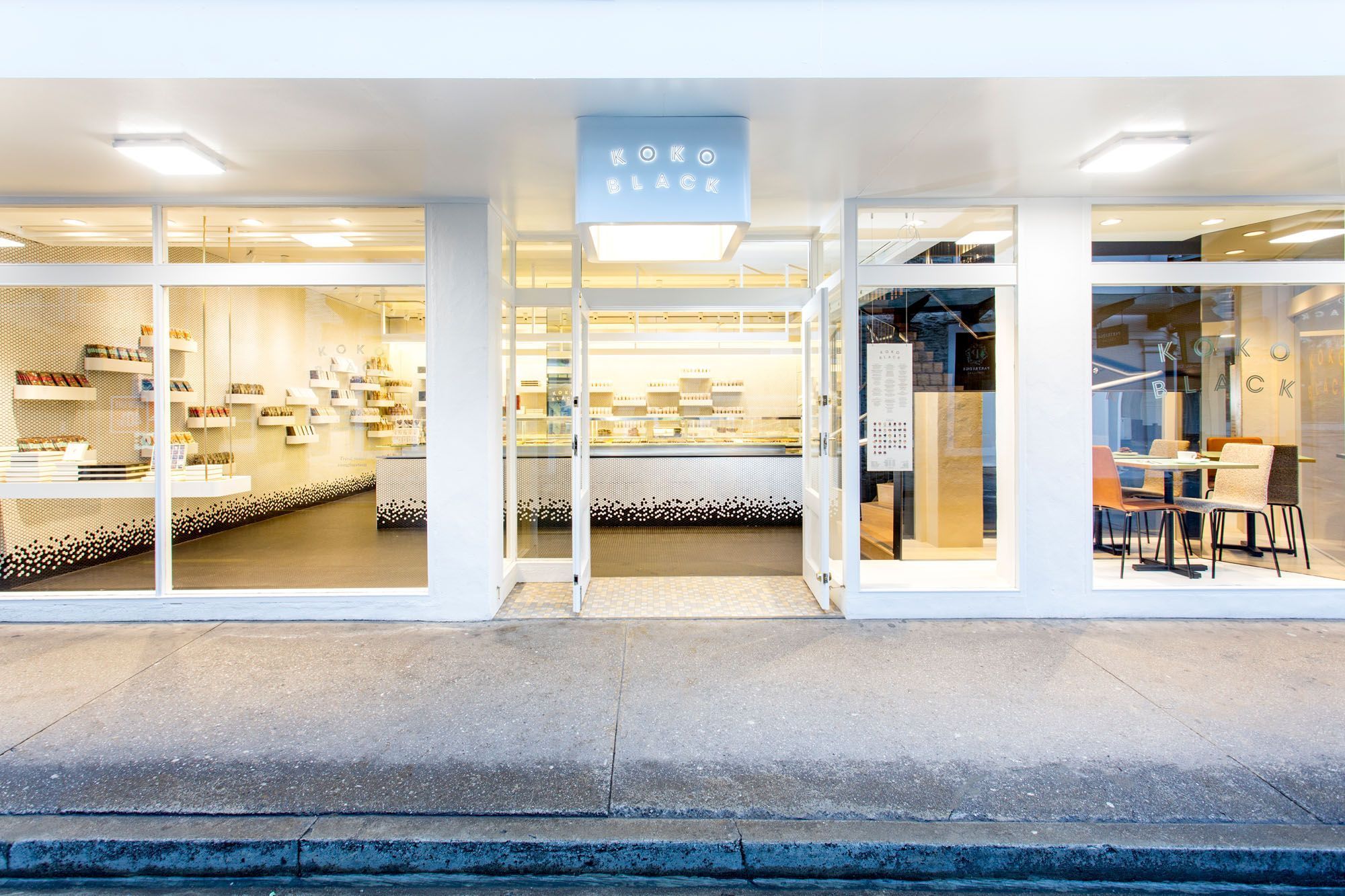 ArchiPro Project Summary - Design and delivery of Koko Black, a boutique chocolatiers shop and café located in Queenstown, showcasing the expertise of Russell & George.