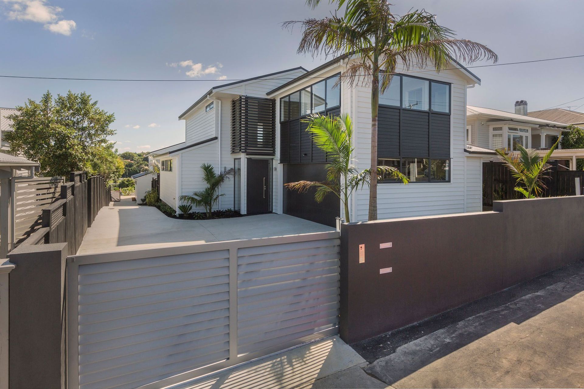 ArchiPro Project Summary - Two contemporary 2-level homes in Remuera featuring weatherboard exteriors, aluminium joinery, and a blend of carpet and timber flooring, complemented by extensive site works including a 3-meter retaining wall, completed in 8 months by Young and Richards Architects.