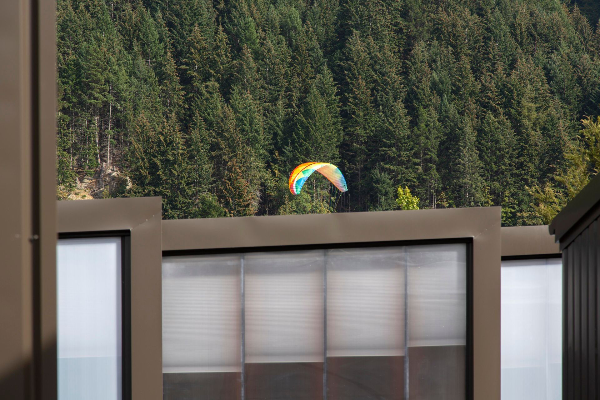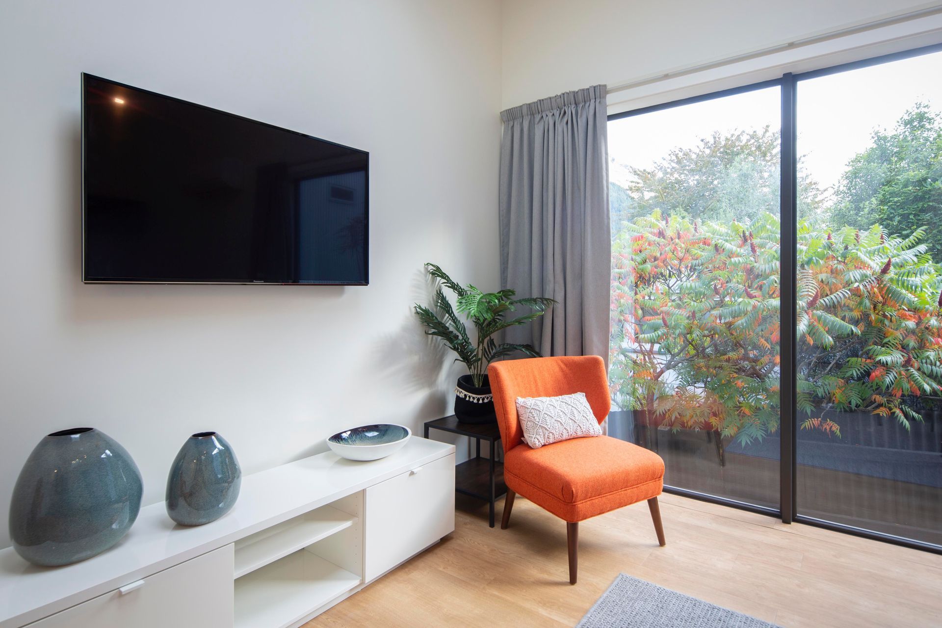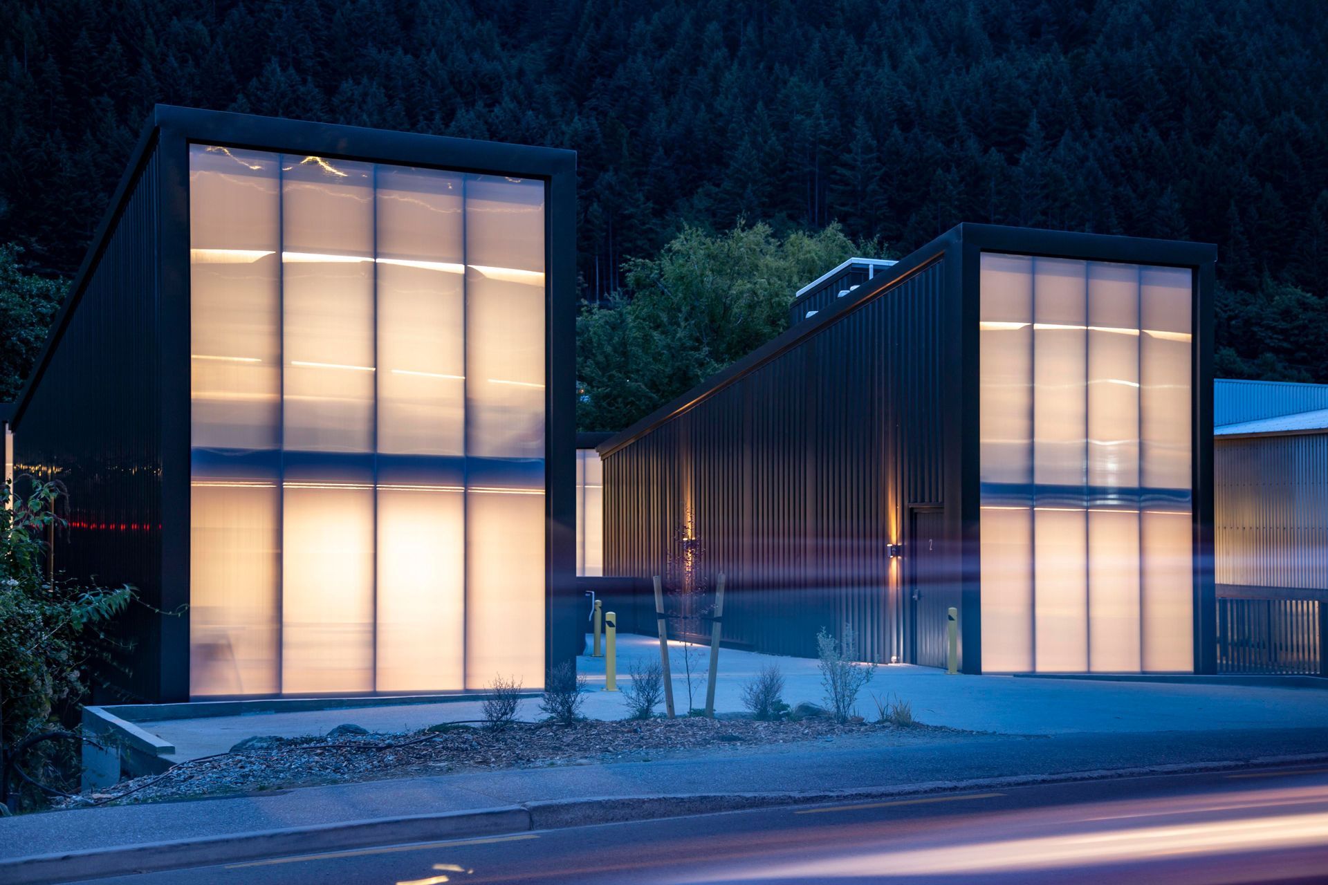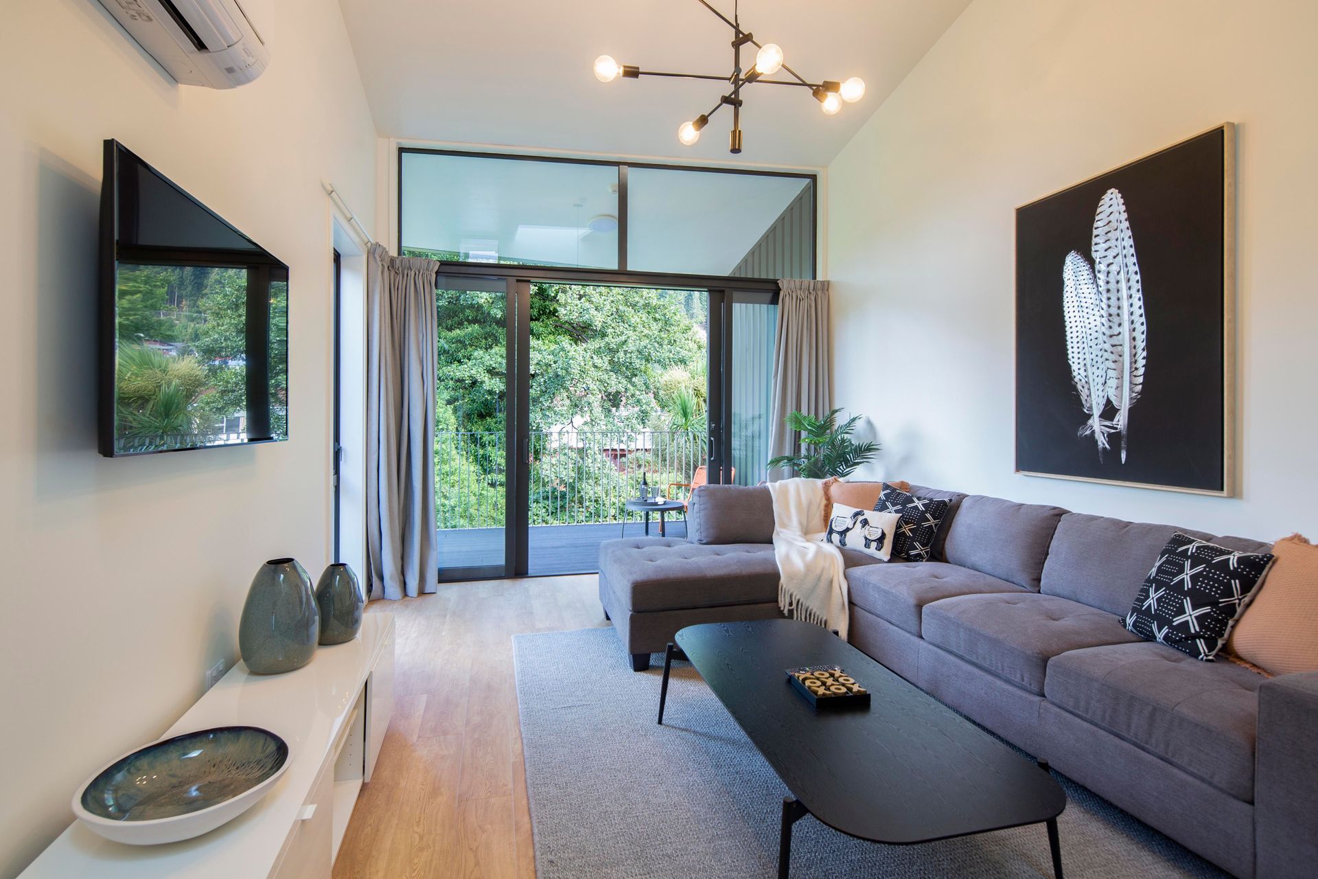 ArchiPro Project Summary - Koura Apartments offer six spacious self-contained units in downtown Queenstown, featuring large translucent end walls for privacy and natural light, complemented by industrial detailing and warm natural timbers for a light and airy interior.