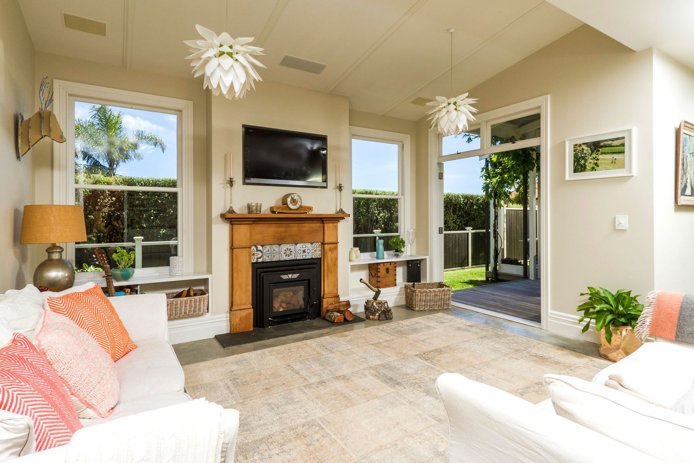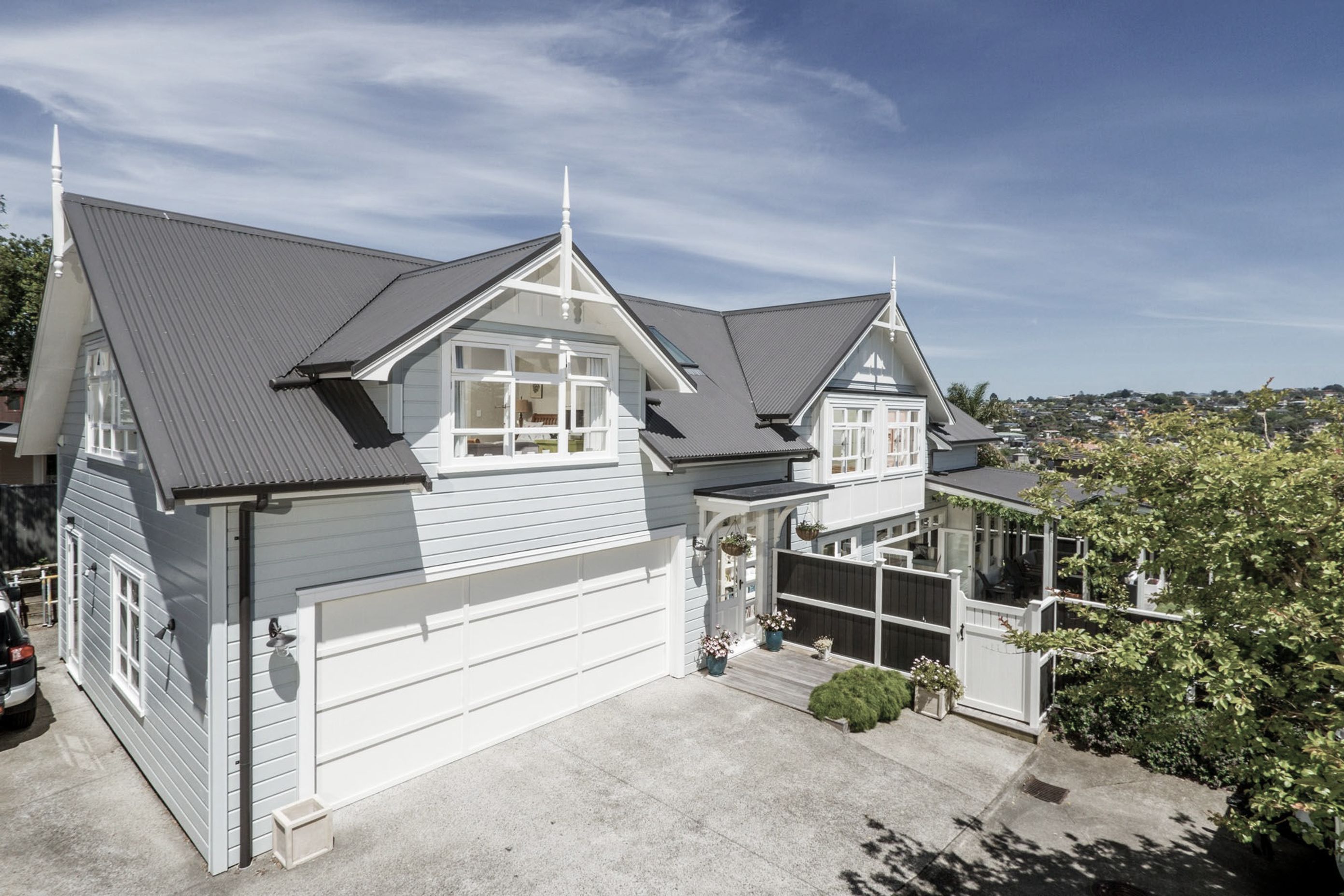 ArchiPro Project Summary - A contemporary interpretation of a villa featuring timber joinery, shiplap weatherboards, and a recycled brick chimney, Kowhai House offers a split-level design with open-plan living, dormer windows, and a light-filled upper floor.