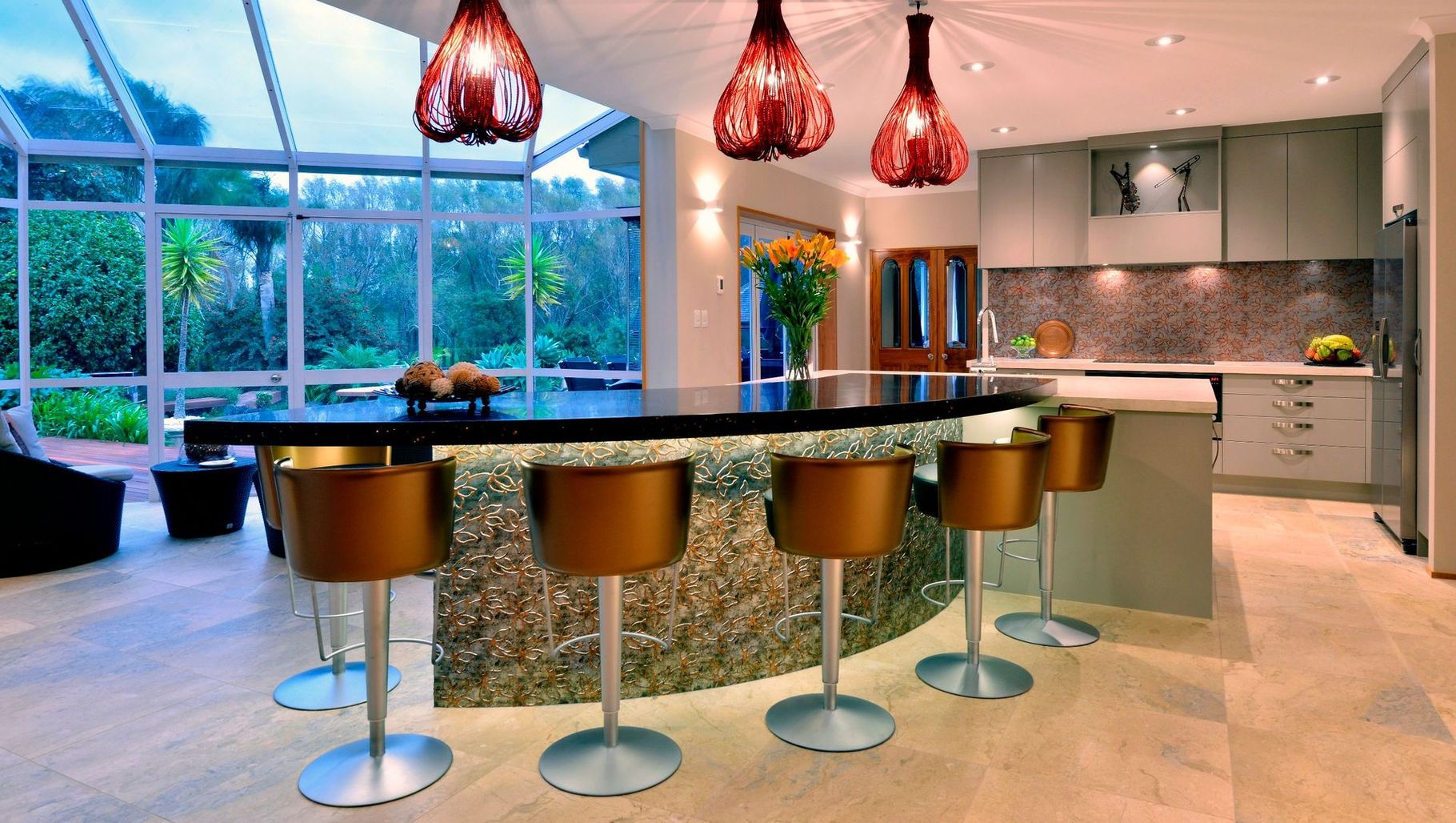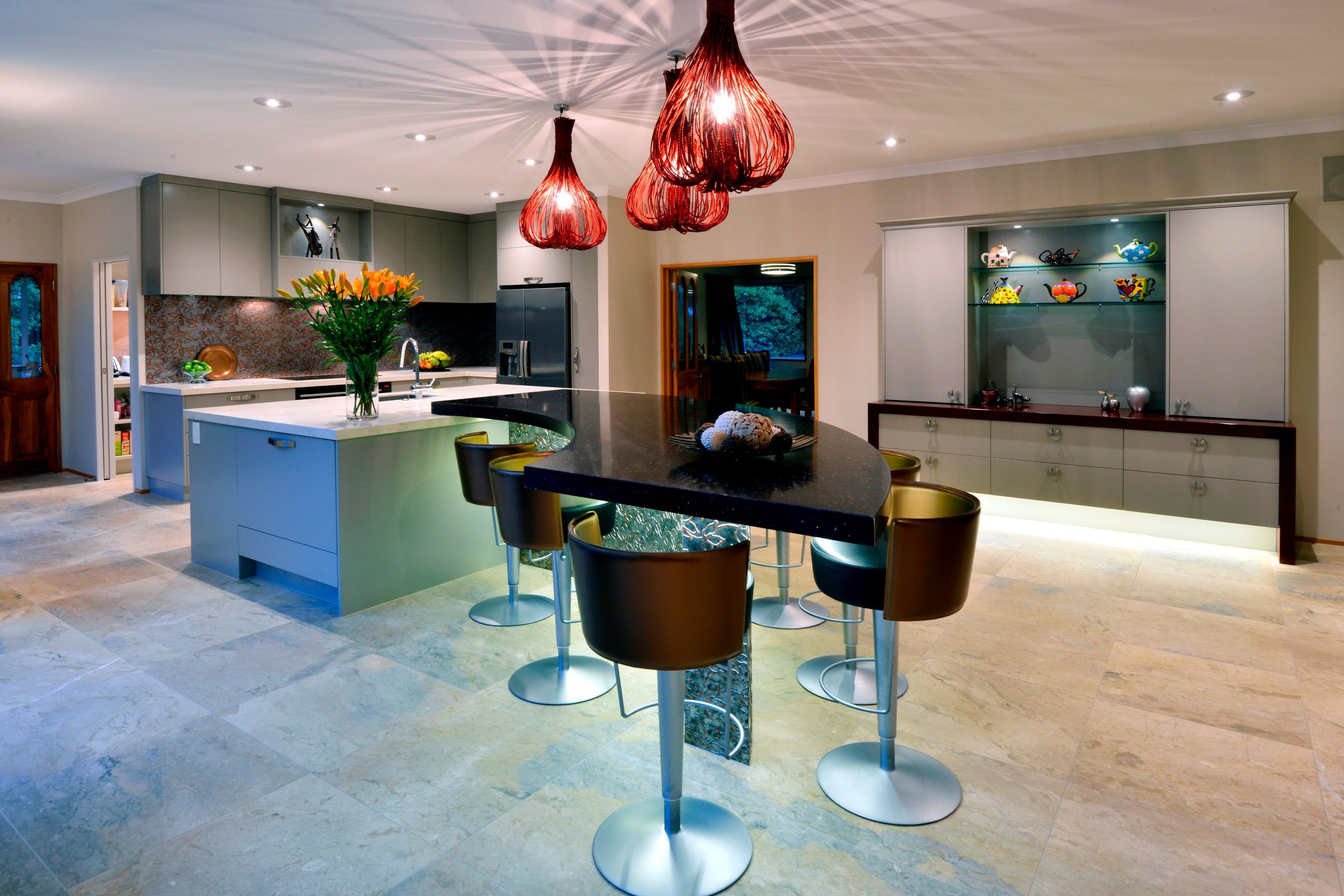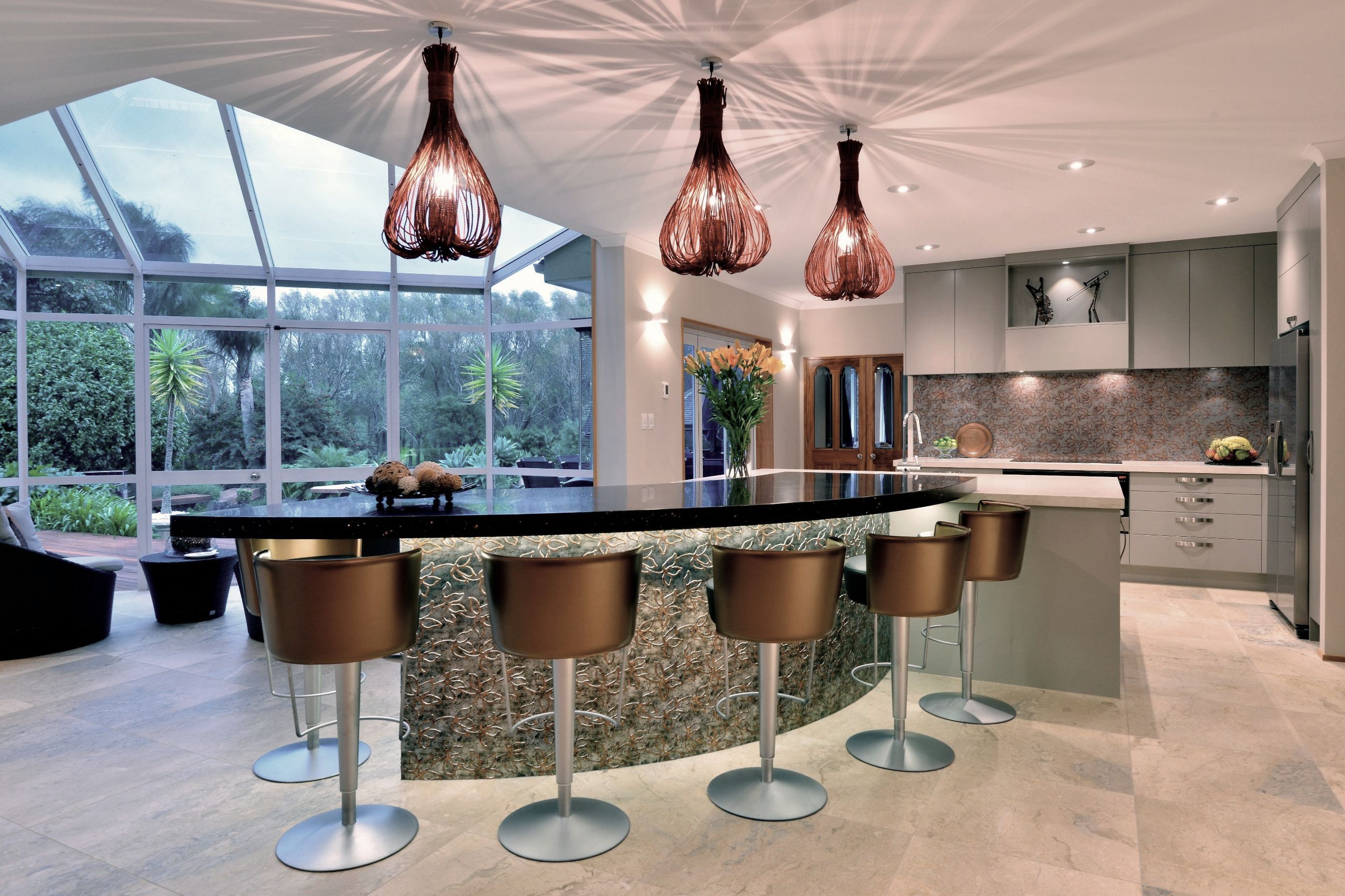 ArchiPro Project Summary - The Kumeu Kitchen project highlights modern design with elegant furniture, sophisticated lighting, and a unique ceiling, creating a functional and inviting space for cooking and entertaining.
