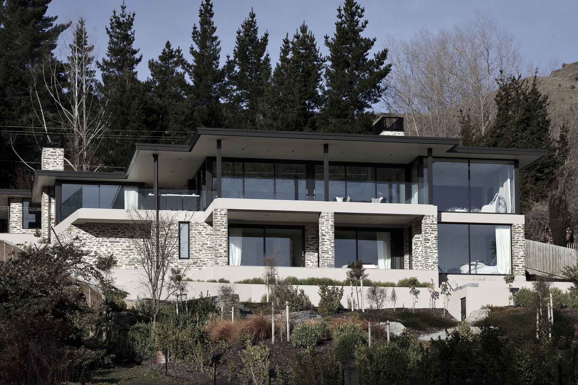 ArchiPro Project Summary - Elegant residence located in Lake Hayes, featuring a spacious floor area of 465m2, designed to harmonize with its stunning natural surroundings.