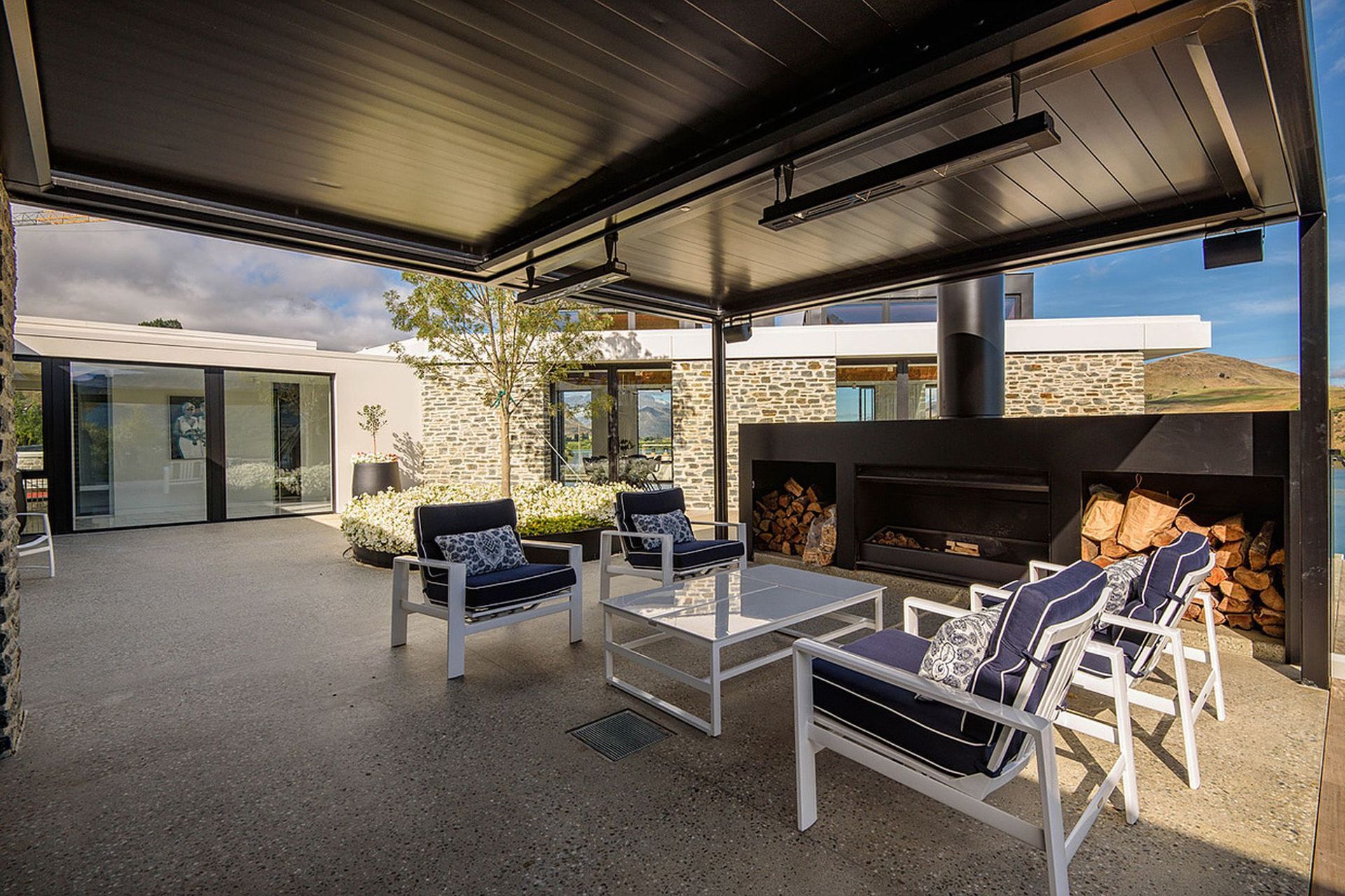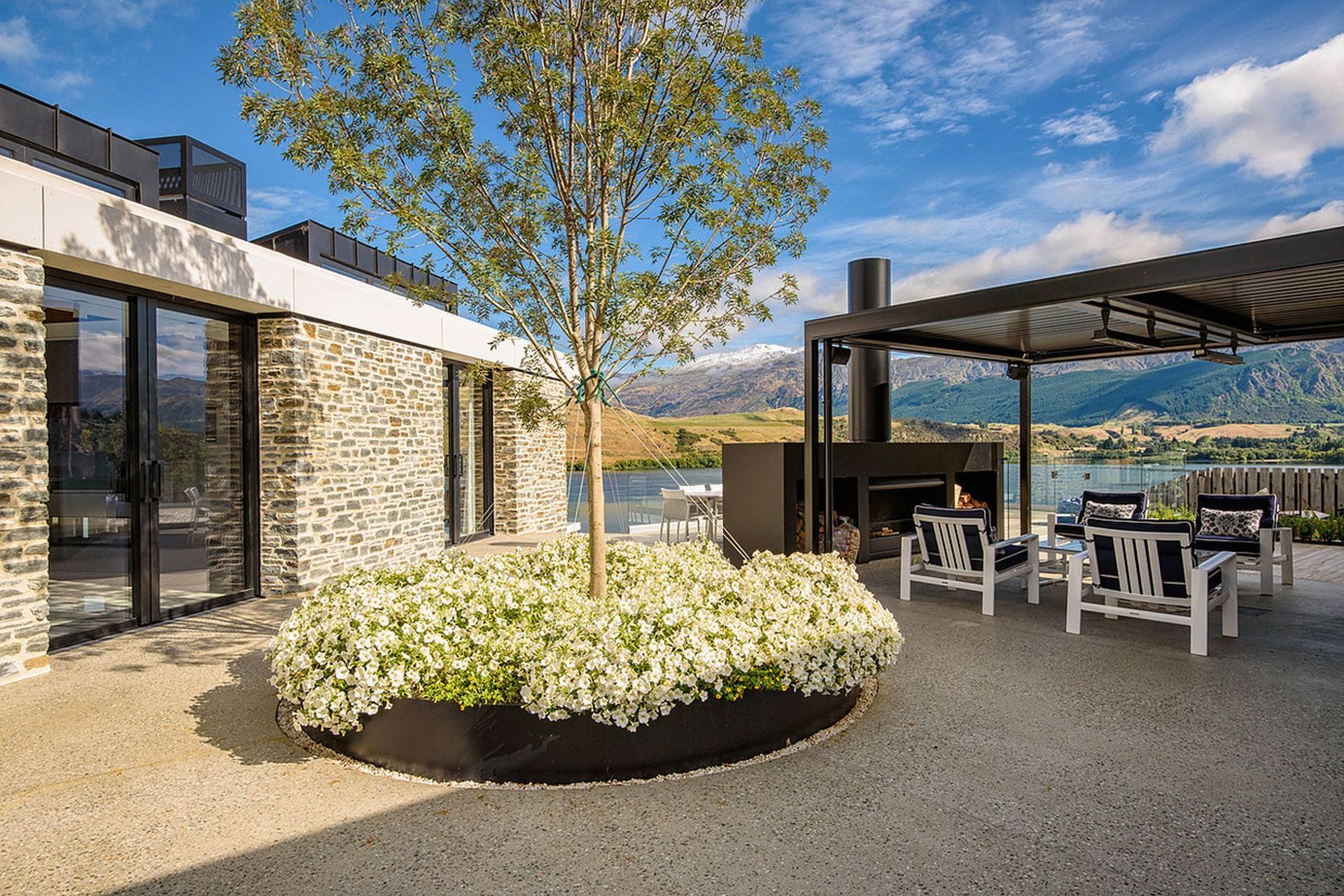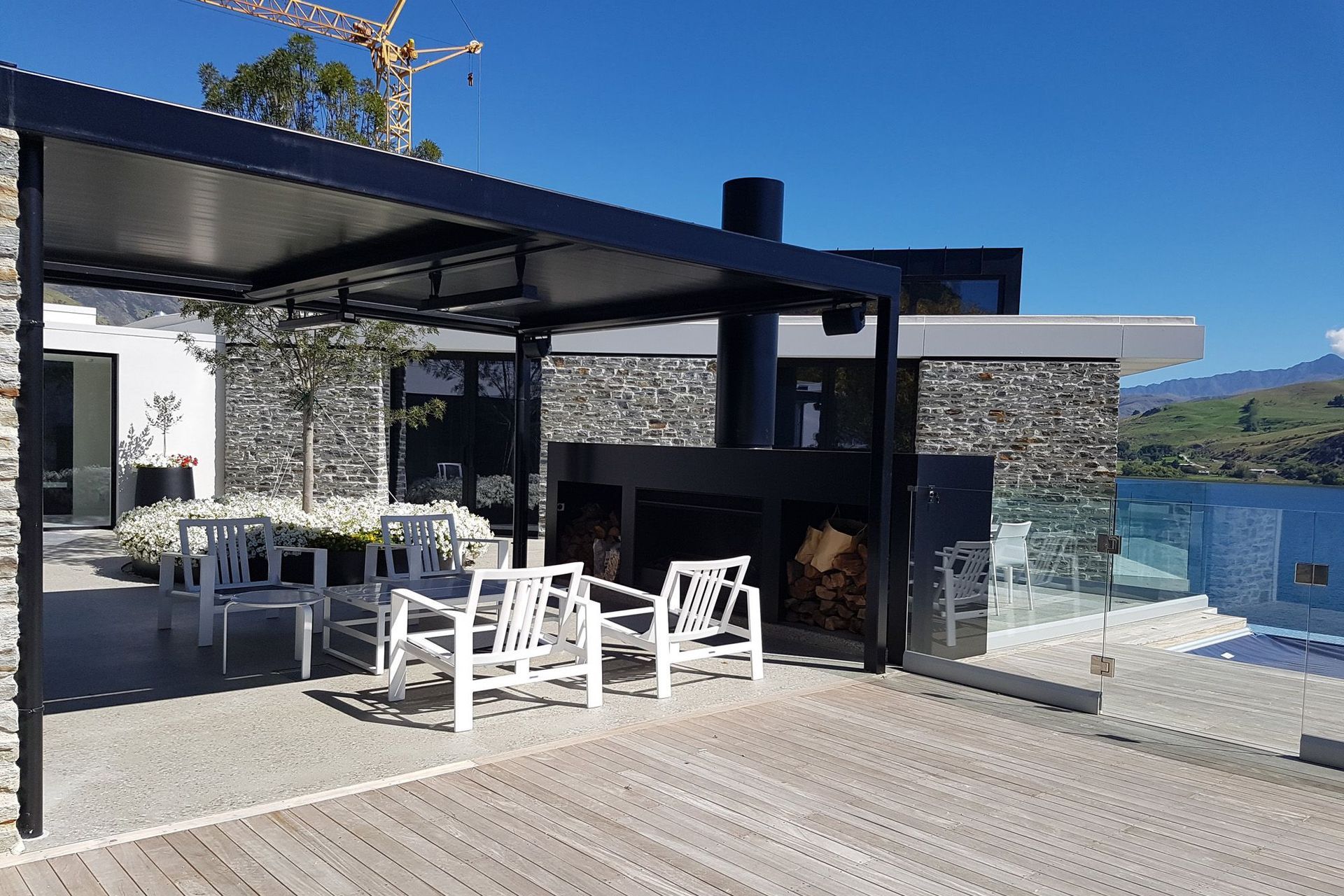 ArchiPro Project Summary - Stunning new home overlooking Lake Hayes, featuring elegant pendant light fixtures and a focus on indoor and outdoor heating, completed by thebuilders.co.nz.