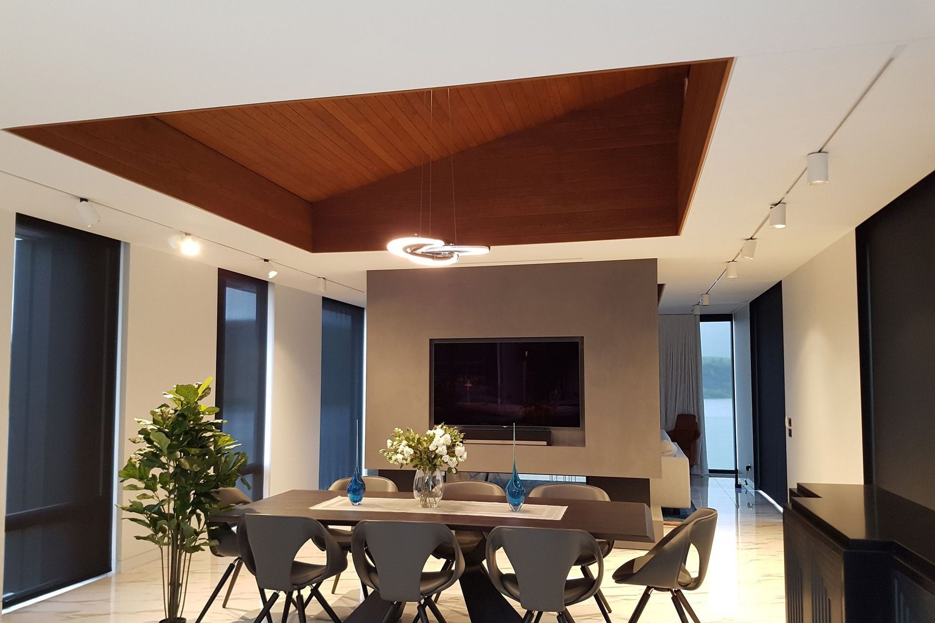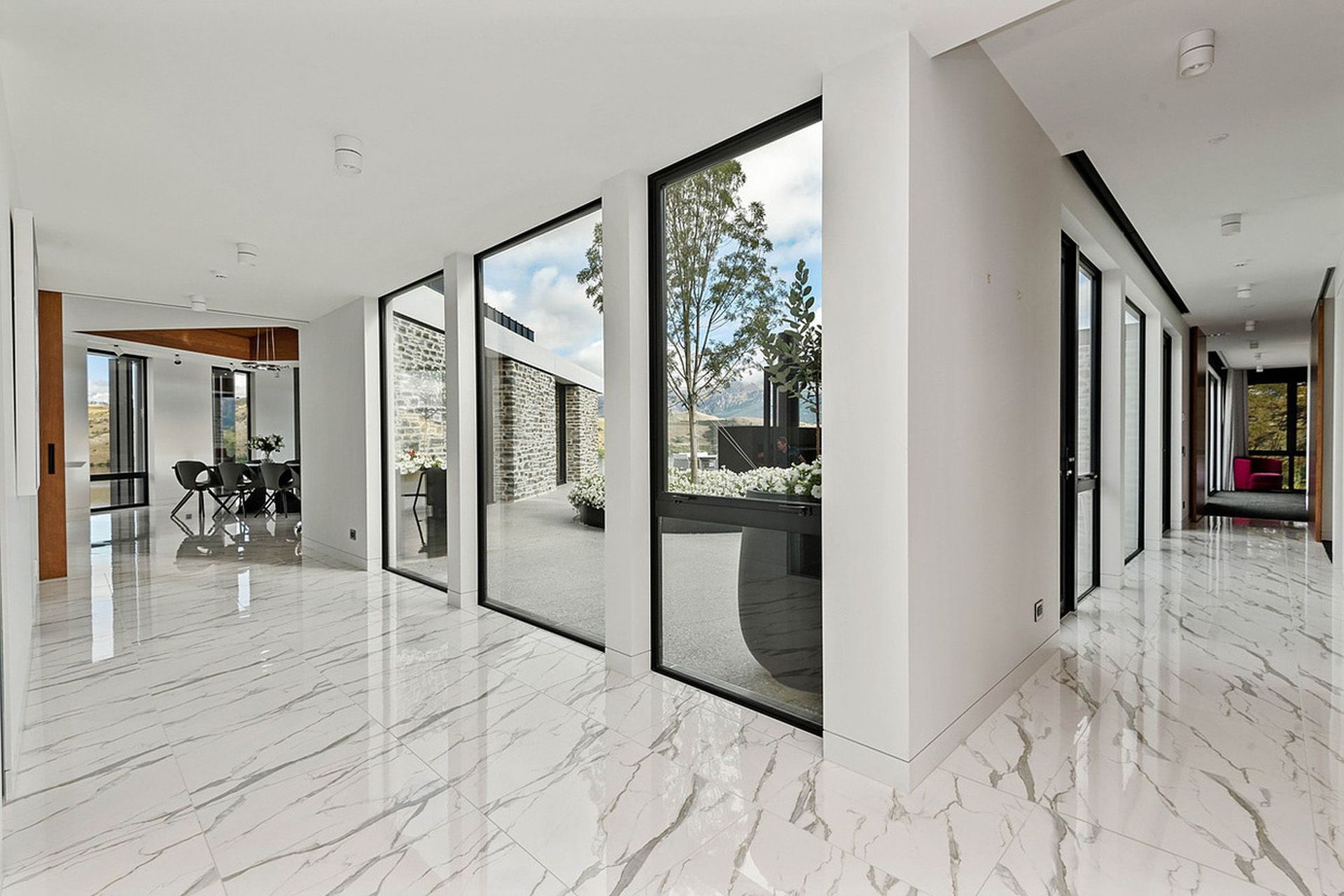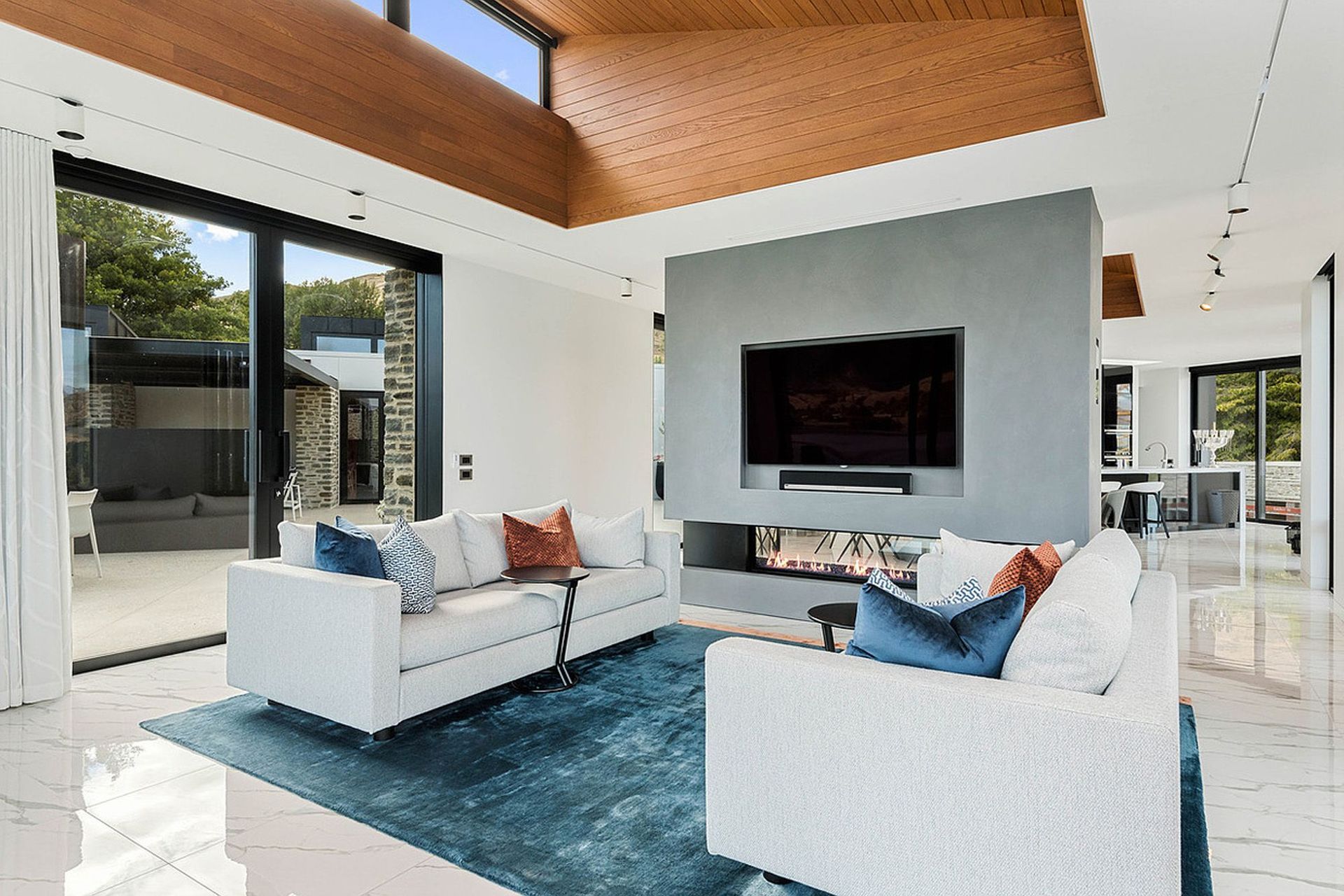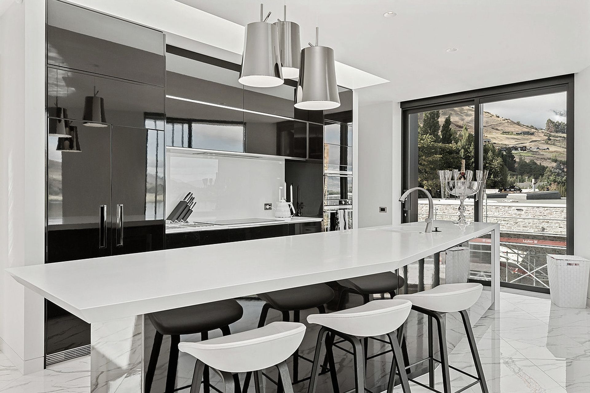 ArchiPro Project Summary - Stunning new home overlooking Lake Hayes, featuring elegant pendant light fixtures and a focus on indoor and outdoor heating, completed by thebuilders.co.nz.