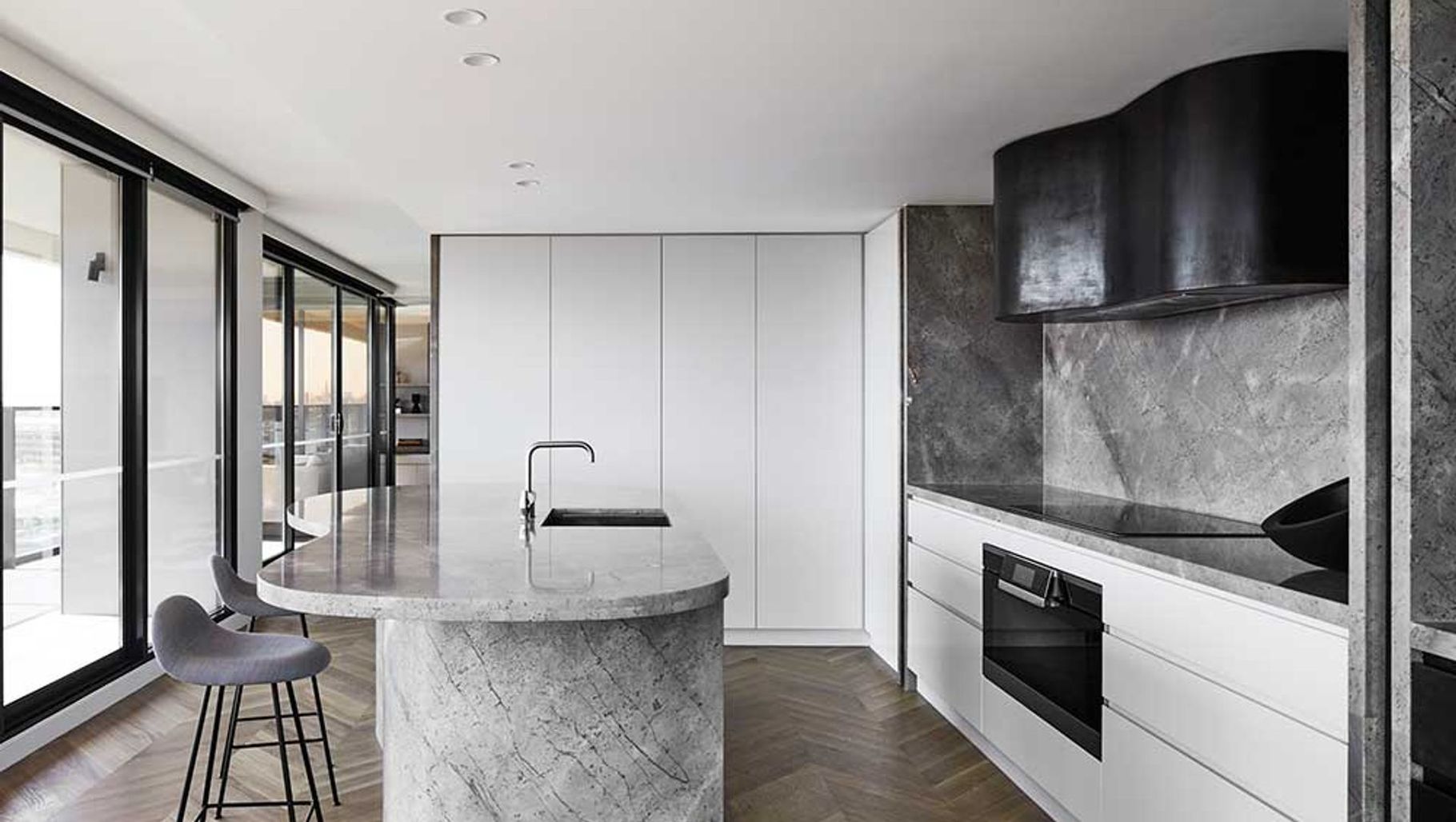 ArchiPro Project Summary - A luxurious transformation of Lake View Penthouse in Melbourne, blending rich tones and high-end materials to create a sophisticated urban retreat for a family transitioning from coastal living.