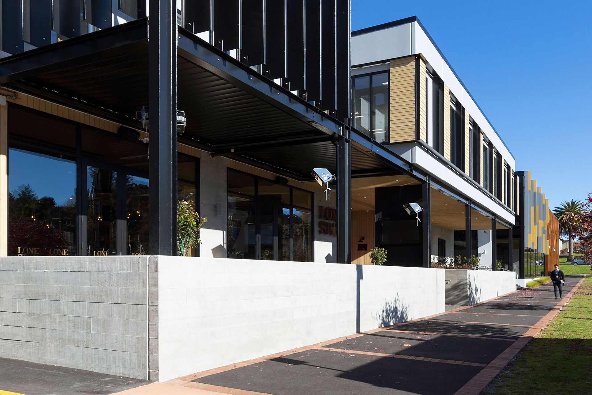 ArchiPro Project Summary - A successful commercial office and retail development in Rotorua, featuring a dynamic façade design and a rich material palette, completed in 2016 for TPB Properties Ltd, spanning 3,500 sq.m at a cost of $7M.