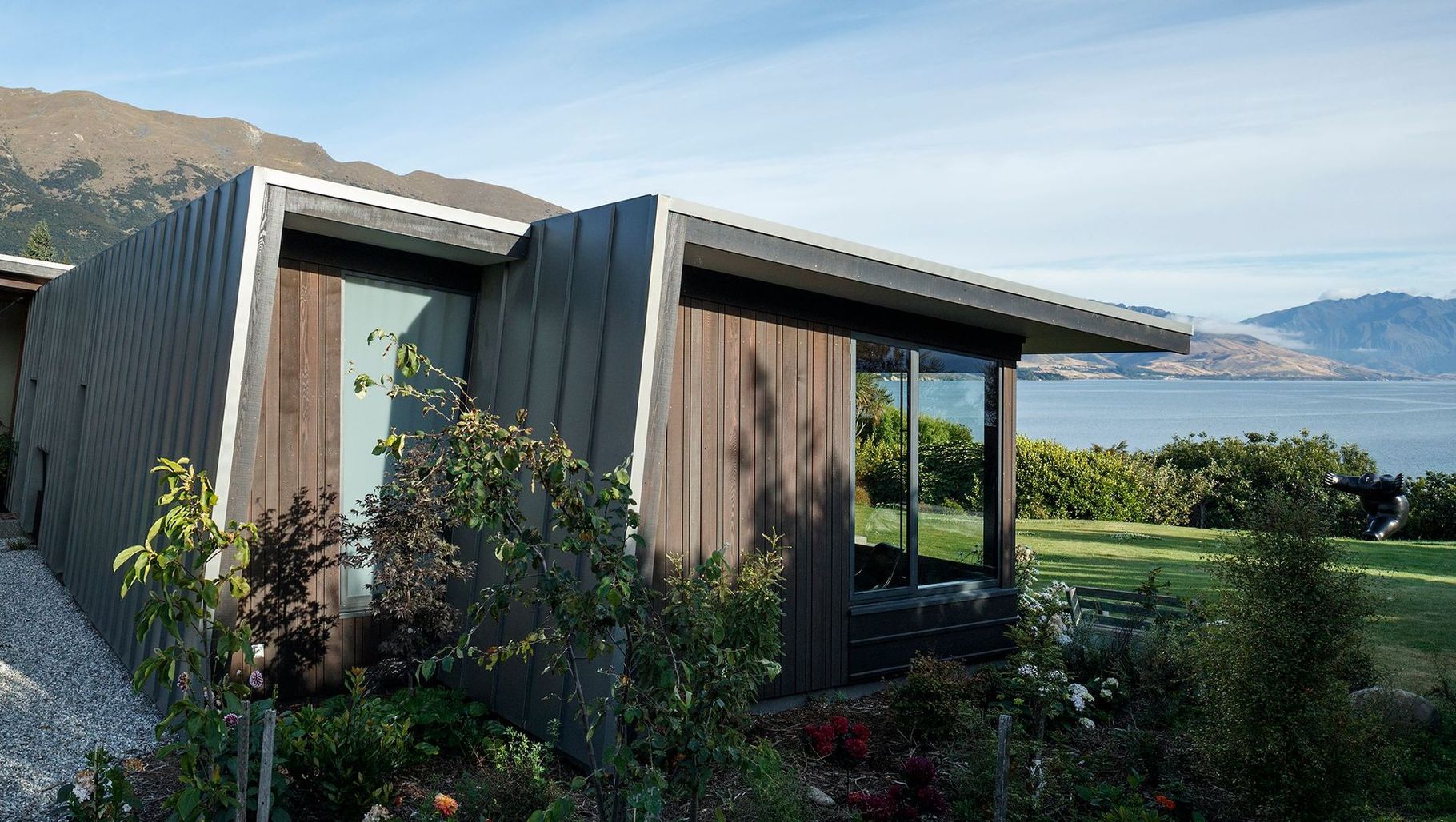 ArchiPro Project Summary - A thoughtfully designed family residence at Lake Hawea, featuring two wings for optimal views, sustainable materials, and energy-efficient systems, seamlessly blending with the natural landscape while providing comfort and style.
