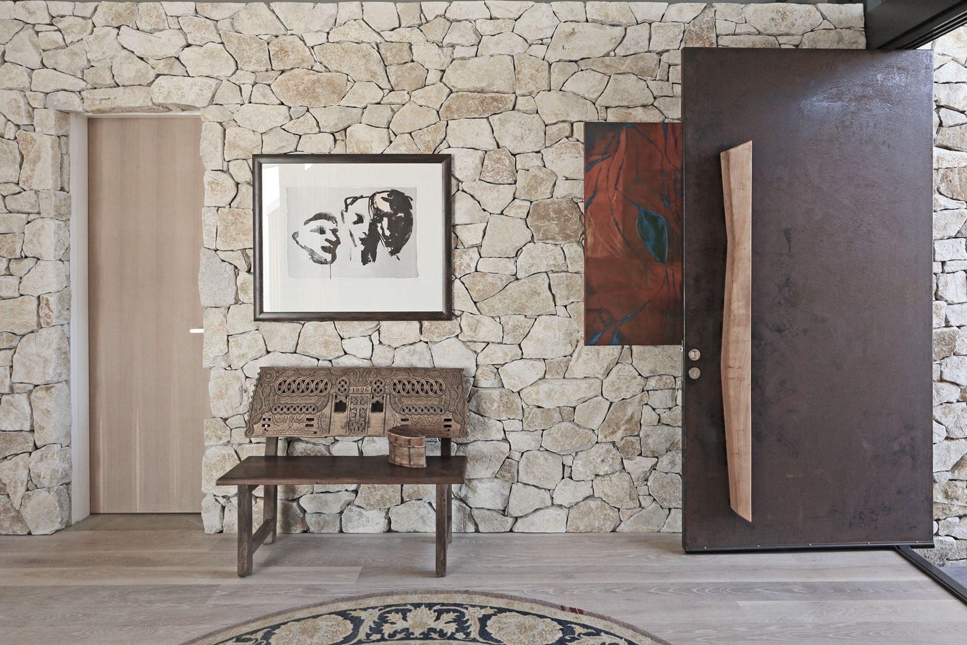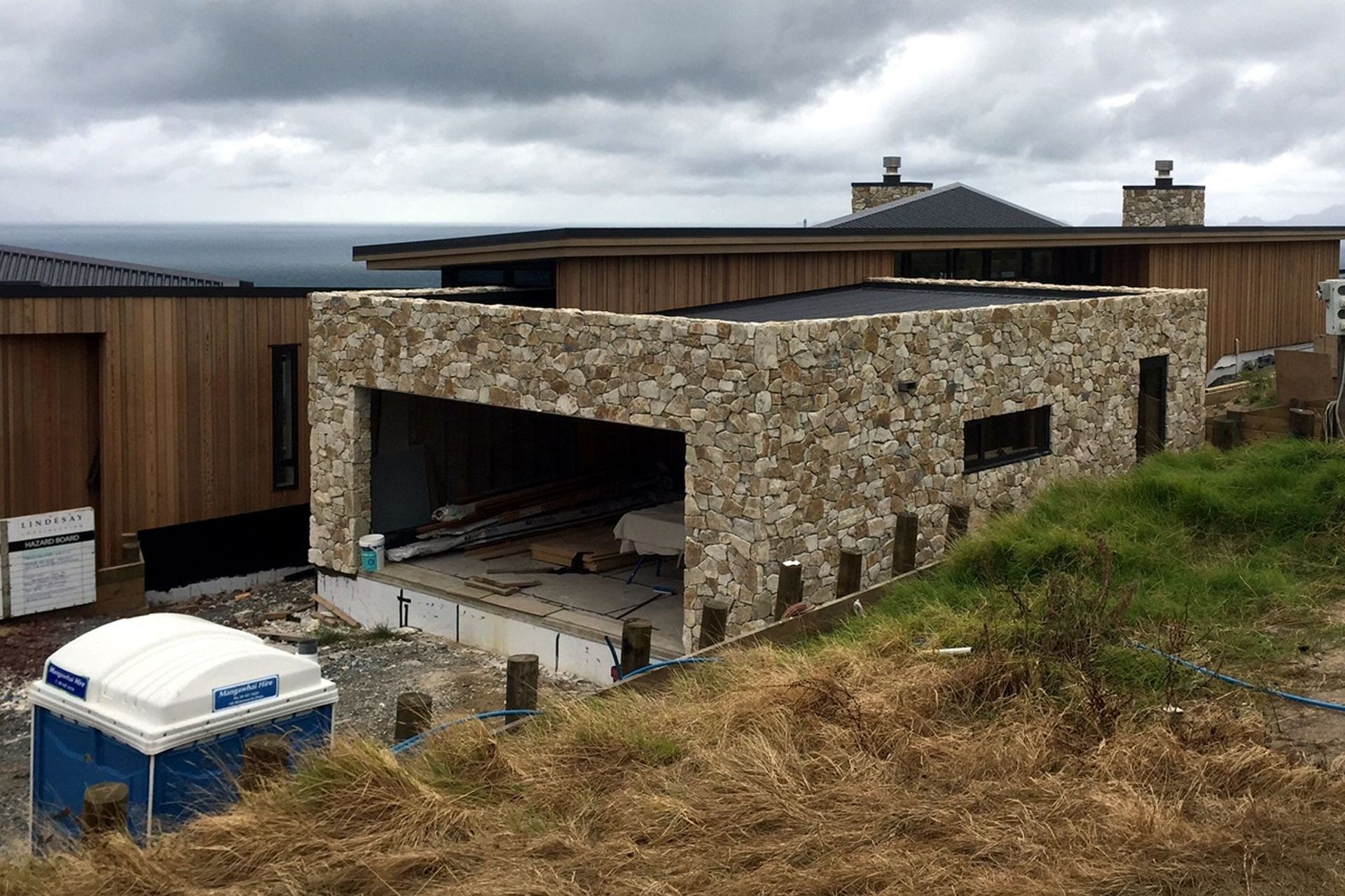 ArchiPro Project Summary - Supply and installation of Te Kuiti Limestone for a contemporary home at Langs Beach, featuring a rustic drystack finish that enhances the interior and exterior design.