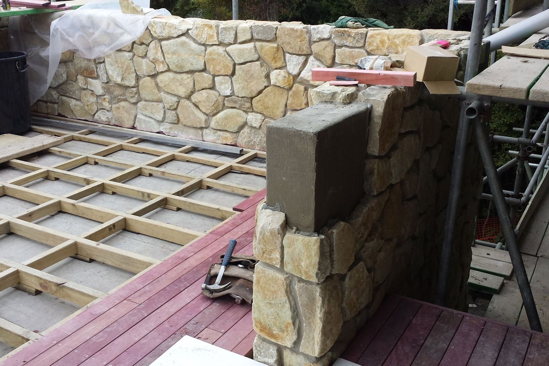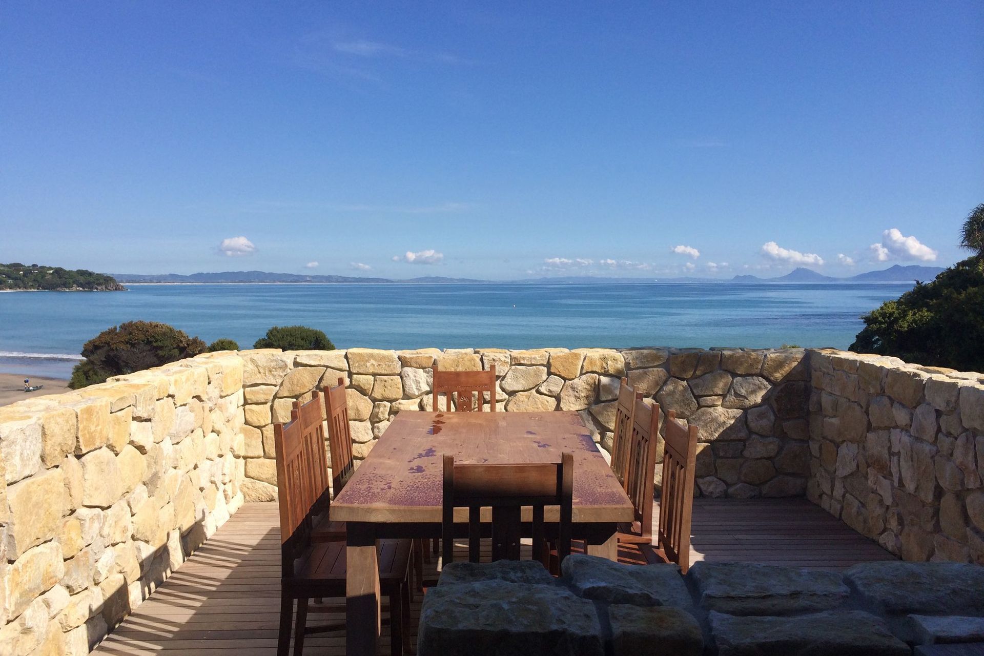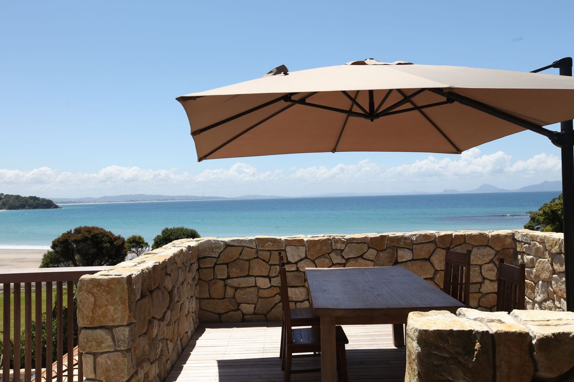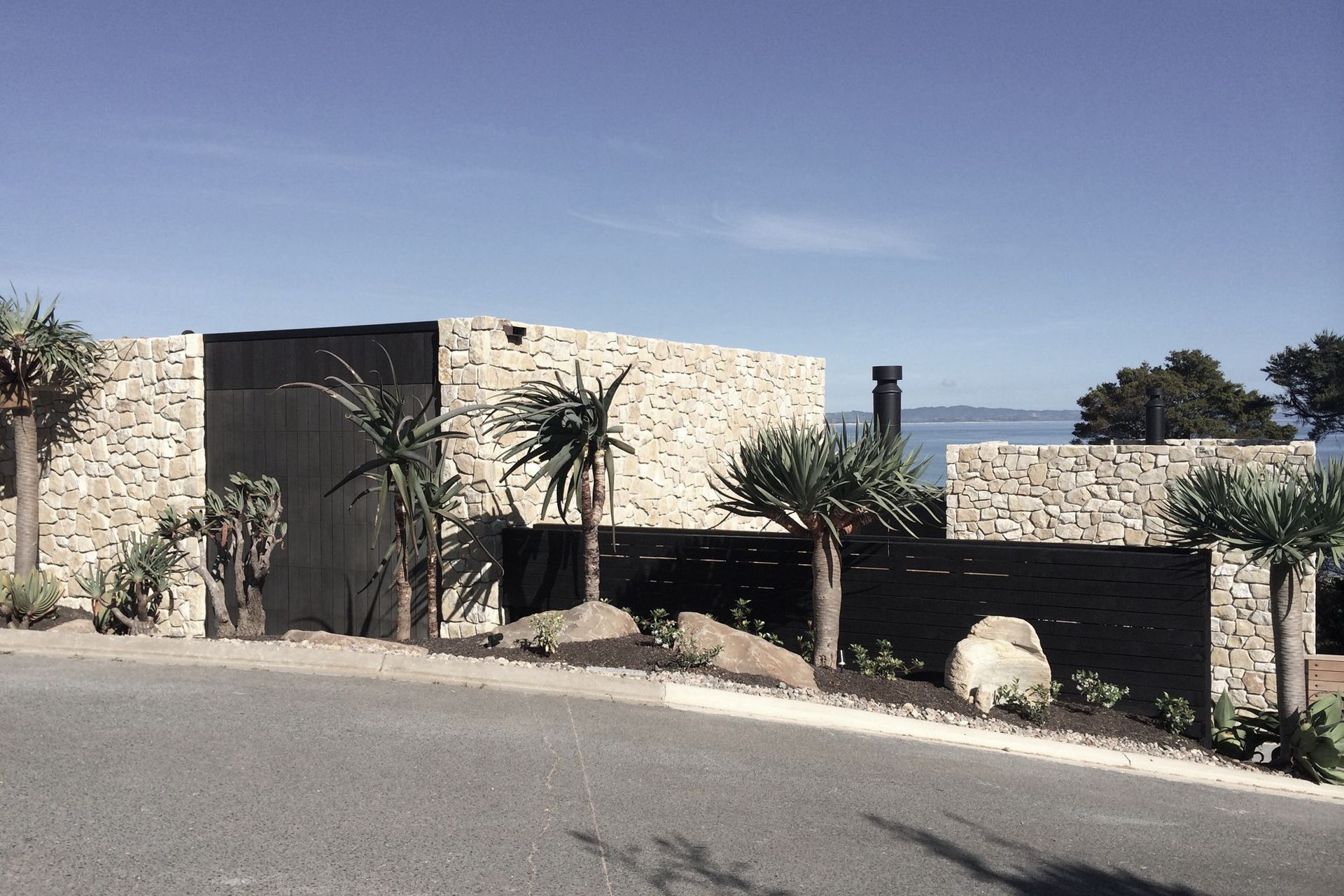 ArchiPro Project Summary - Te Kuiti Limestone cladding project at Langs Beach, featuring lightweight, warm-toned stone with an organic look, achieved through a collaborative approach with architects and builders, resulting in a stunning dry-stack finish that exceeded expectations.