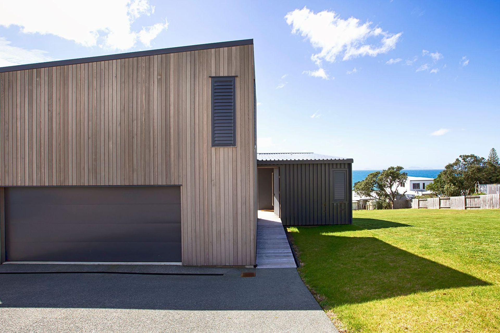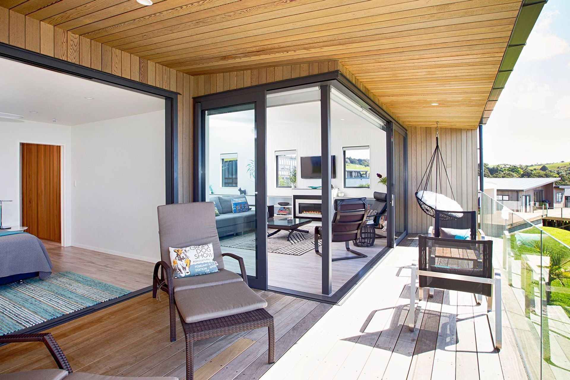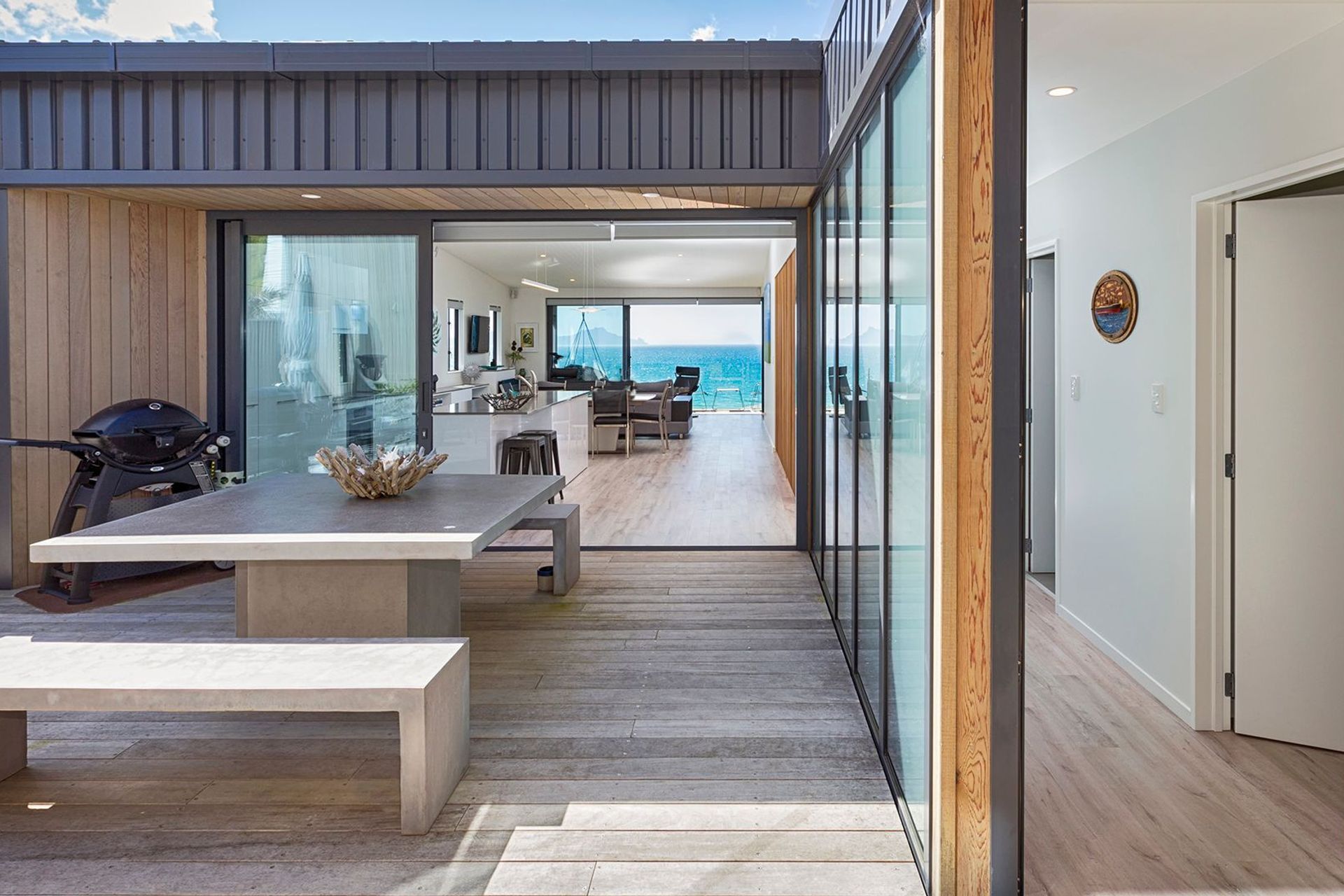 ArchiPro Project Summary - A modern sun-filled home in Mangawhai, featuring expansive decks, stunning sea views, and a seamless flow between indoor and outdoor spaces, designed by architect Richie Pearce.