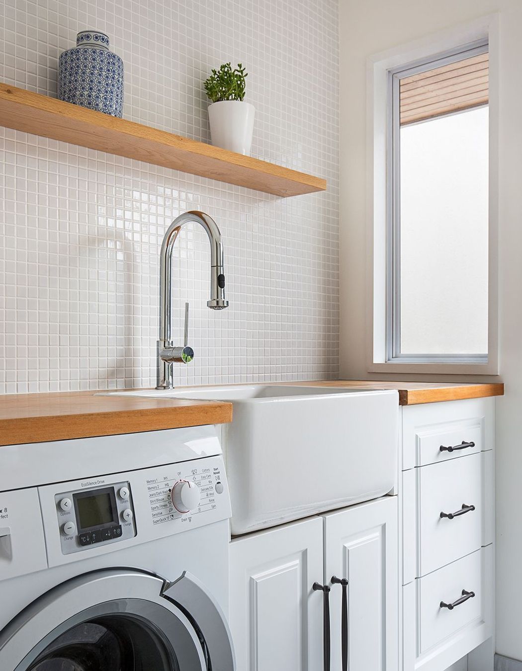 ArchiPro Project Summary - This laundry project combines functionality and style with modern plumbing fixtures and a well-designed countertop.
