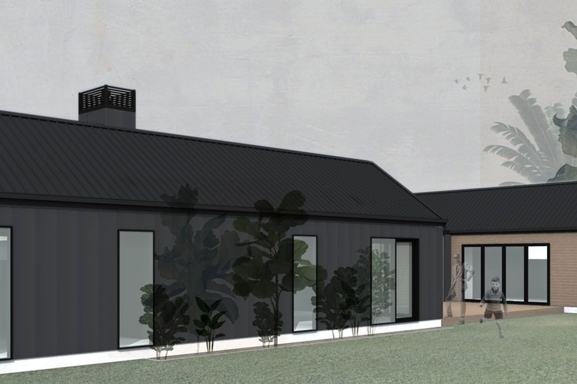 ArchiPro Project Summary - A unique single-storey 260m2 residential dwelling designed for outdoor entertaining, featuring a modular style with gable roof lines and modern materials, creating a hidden entertaining area while blending seamlessly into a fast-developing neighborhood.