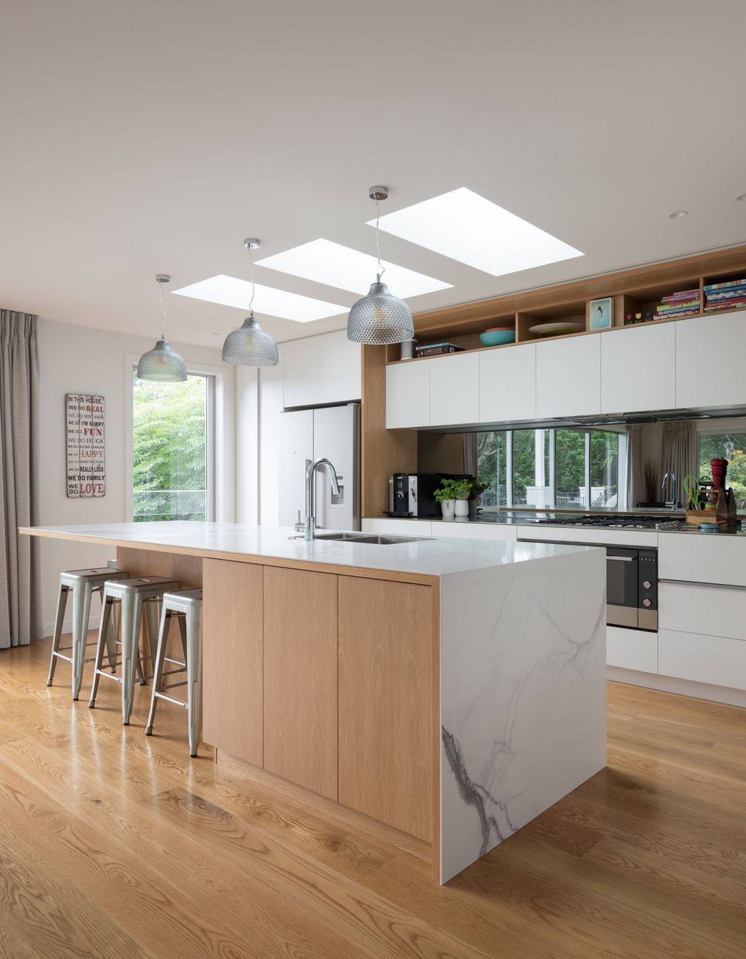 ArchiPro Project Summary - Renovation of a family home featuring open plan living, a sunlit kitchen, and functional storage solutions for a busy family of four.