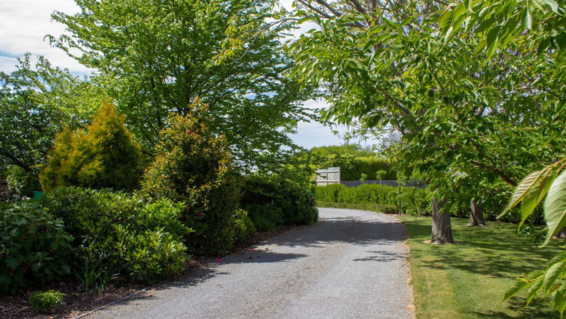 ArchiPro Project Summary - Revitalized gardens with a cohesive design, featuring new driveways, garden beds, and an orchard, enhanced by Carpinus Betulus hedging to create a strong visual element.