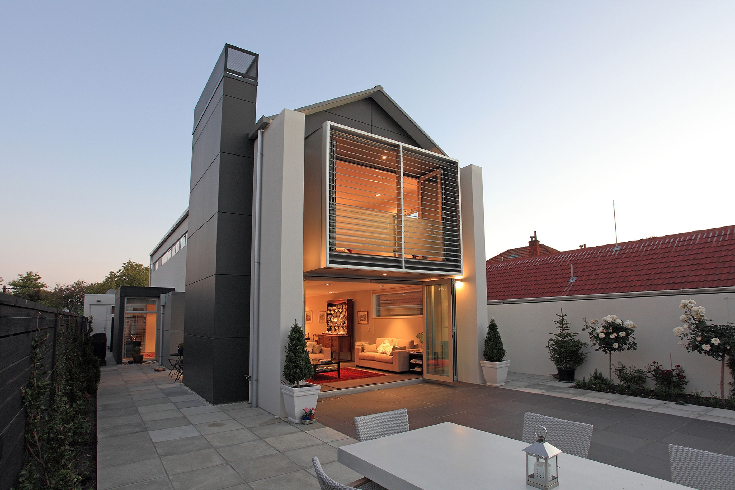 ArchiPro Project Summary - Innovative build by Map Architecture on a compact site in Merivale, featuring a seamless flow from the living kitchen area to a west-facing courtyard, designed to maximize space and meet client specifications with high-quality finishes.