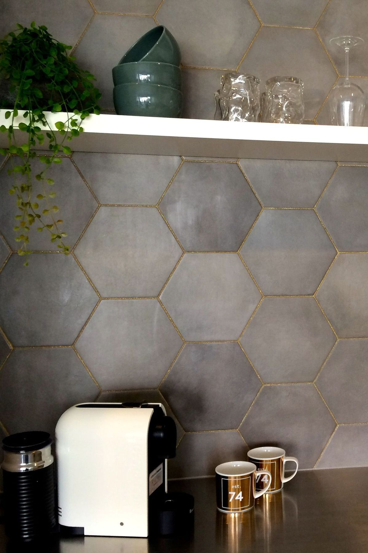 ArchiPro Project Summary - Complete overhaul of a two-bedroom apartment for Air BnB rental, featuring a modern kitchen with custom island, stunning hex tiles, and designer wallpapers, resulting in a unique and luxurious space that receives rave reviews from guests.