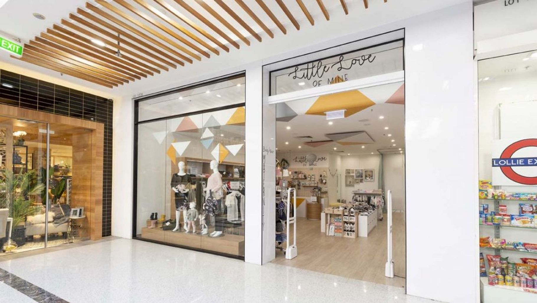 ArchiPro Project Summary - A beautifully designed retail fit-out for Little Love of Mine in Charlestown, NSW, featuring a light-filled space with pastel accents and flexible joinery to showcase high-quality maternity and children’s apparel.