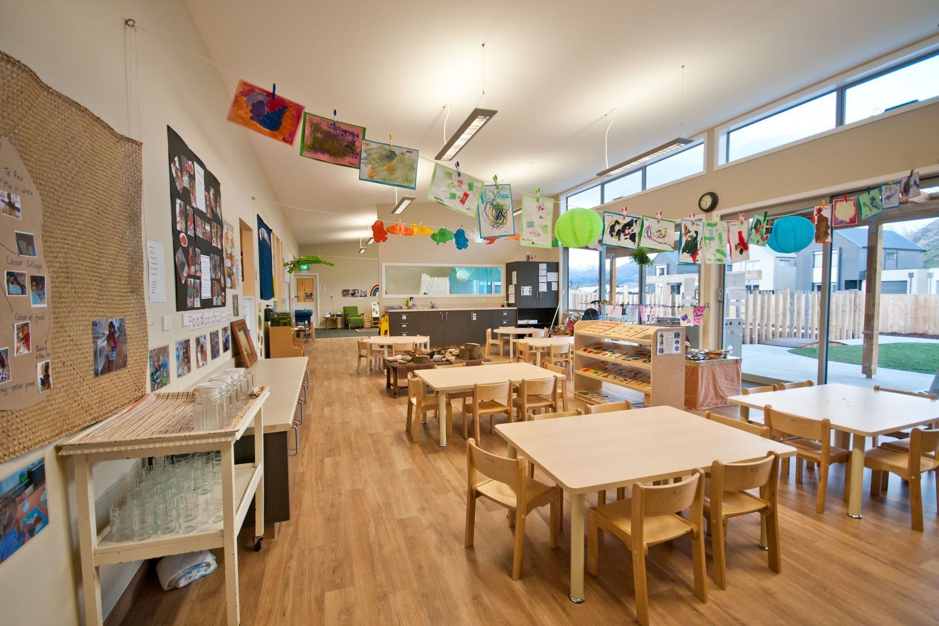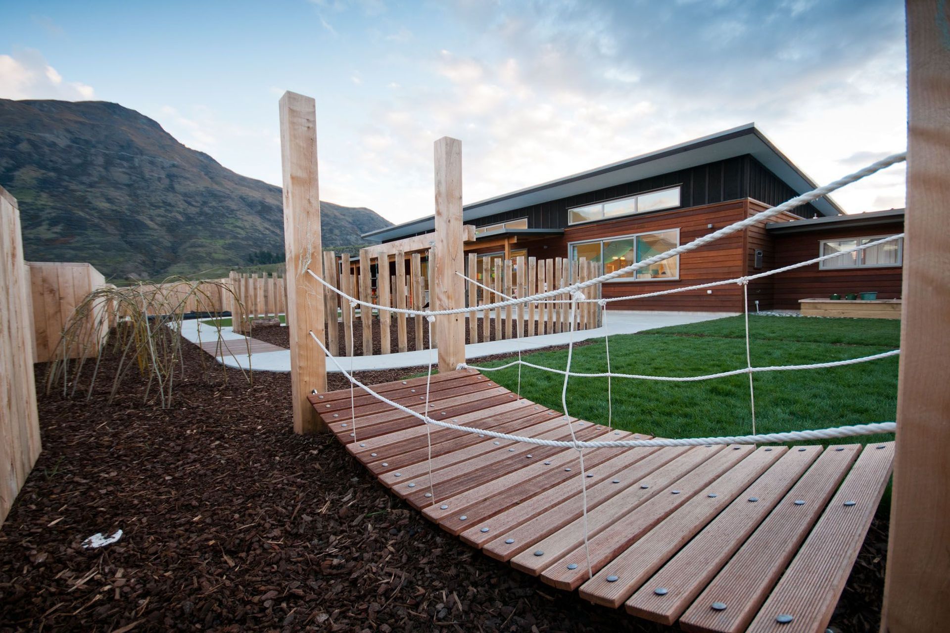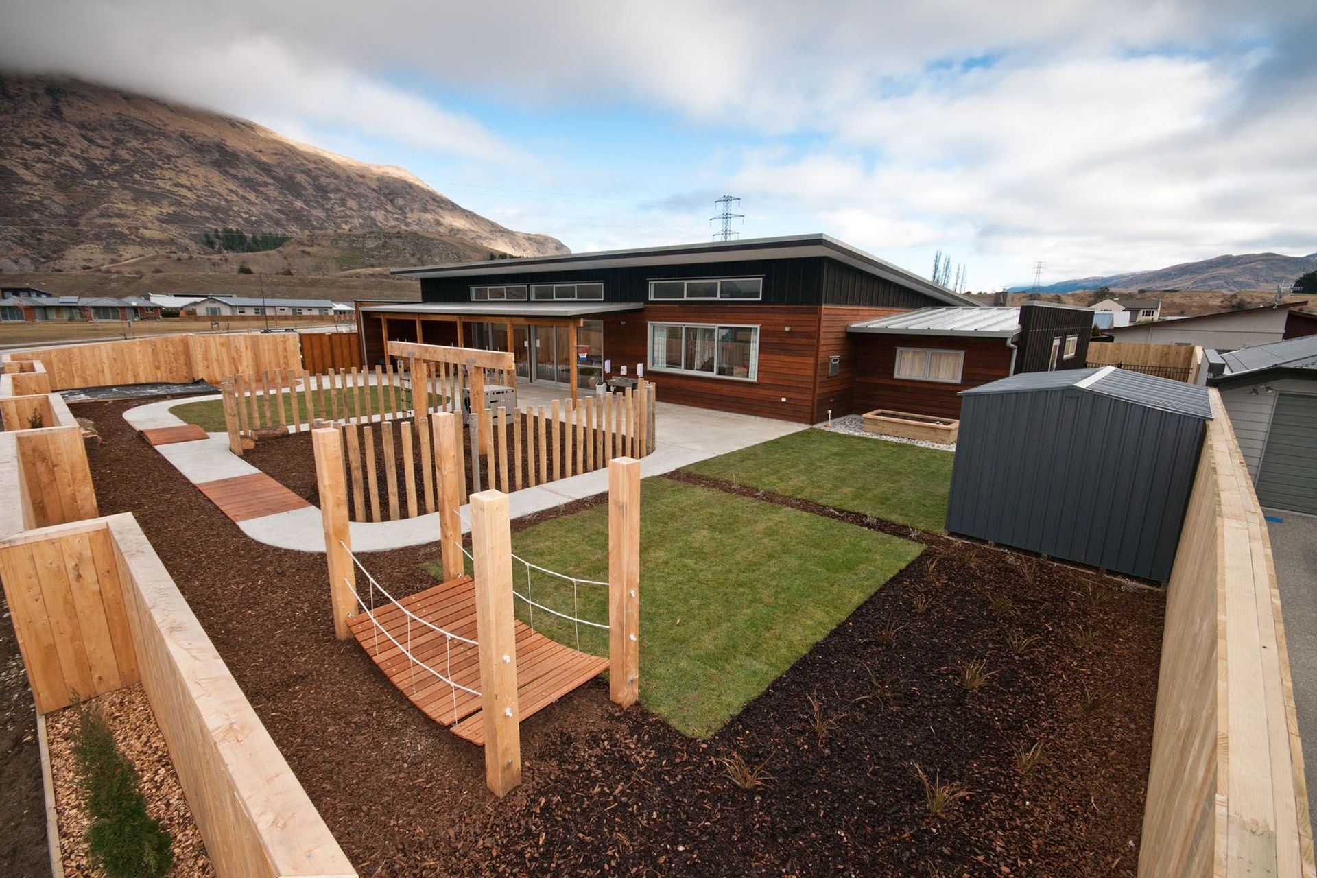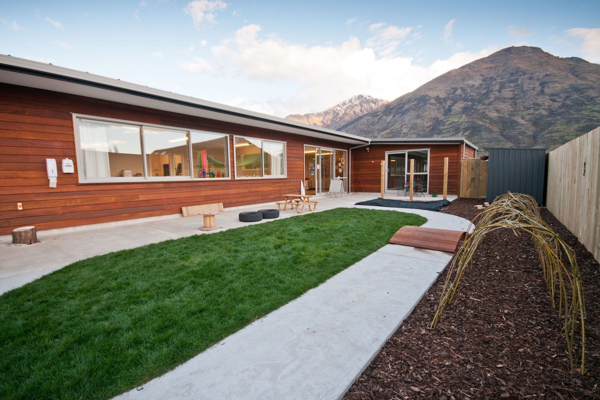 ArchiPro Project Summary - A beautifully designed cedar-clad Childcare Centre in Lake Hayes Estate, harmoniously blending with the surrounding landscape to create an impressive and welcoming environment for children.