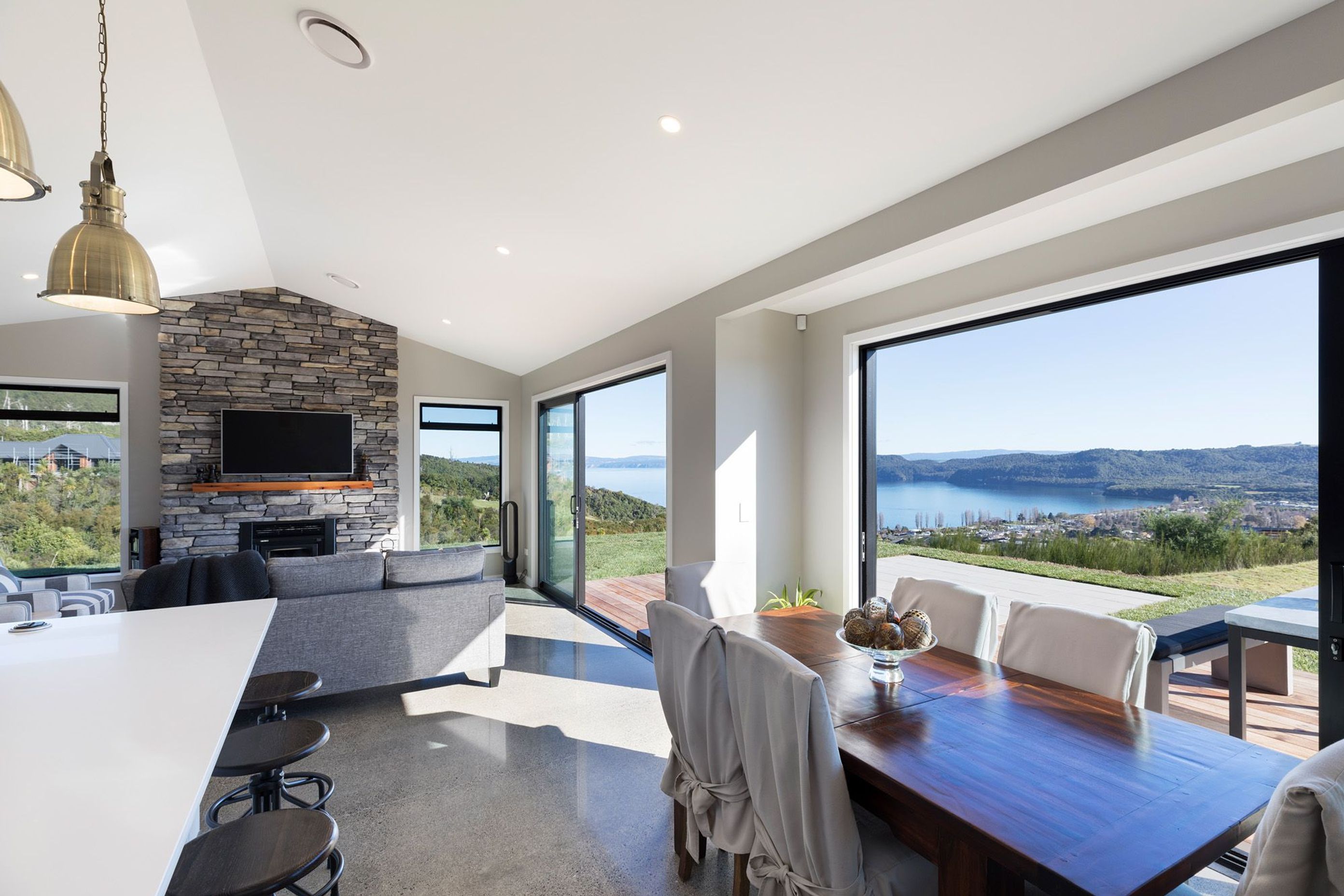 ArchiPro Project Summary - A stunning blend of classic lake-land style and modern architecture, this contemporary home offers breathtaking views over Lake Taupo, perfectly integrating with its picturesque surroundings.