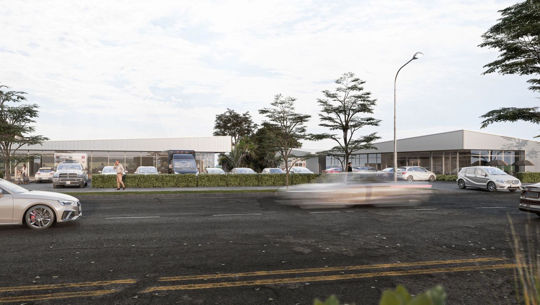 ArchiPro Project Summary - Lockerbie Commercial Village: A modern commercial development in Morrinsville, set for completion in 2024, designed to create a vibrant atmosphere and support local businesses.