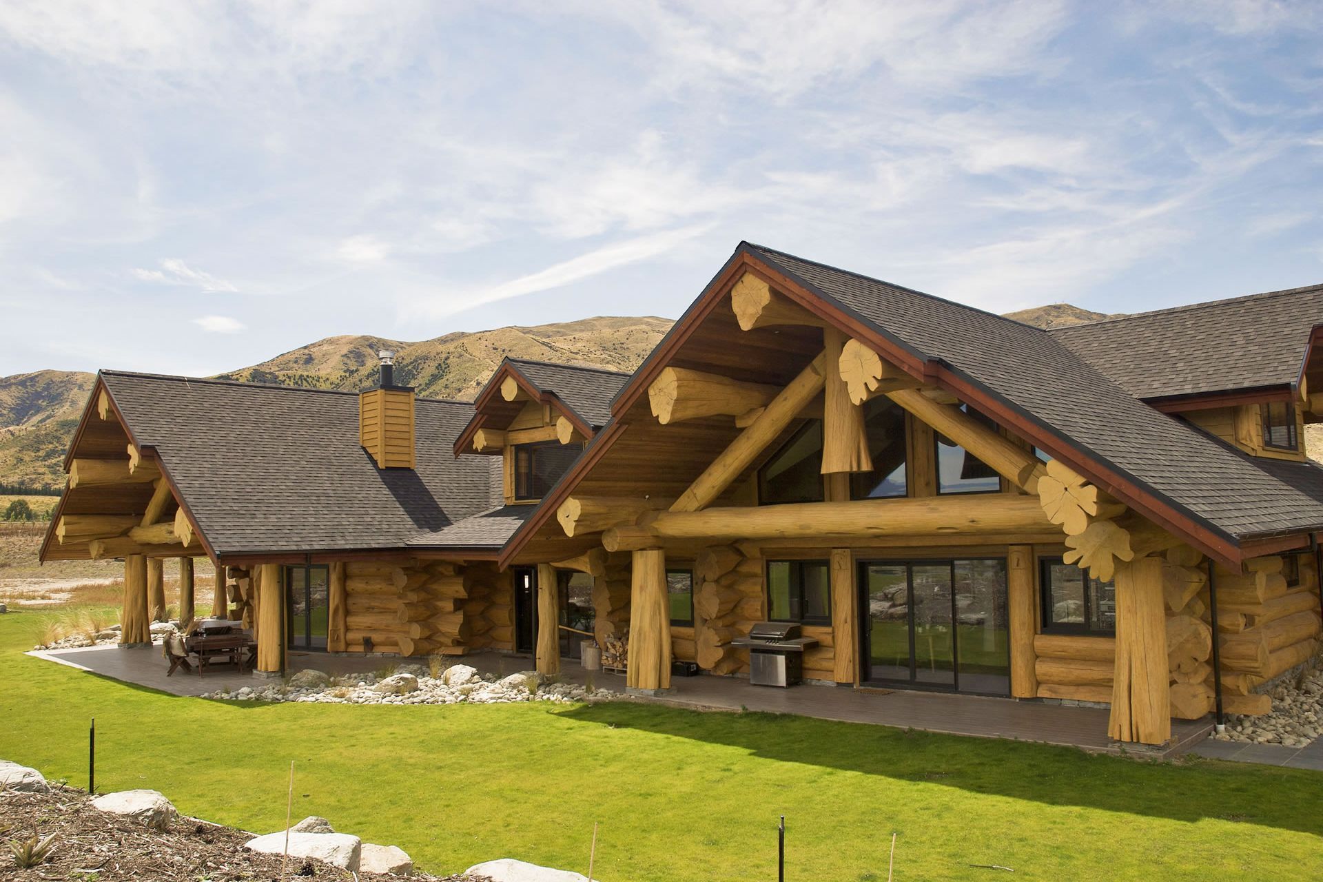 ArchiPro Project Summary - A stunning log home nestled in the picturesque landscape of Central Otago, showcasing natural materials and craftsmanship that harmonize with the surrounding environment.