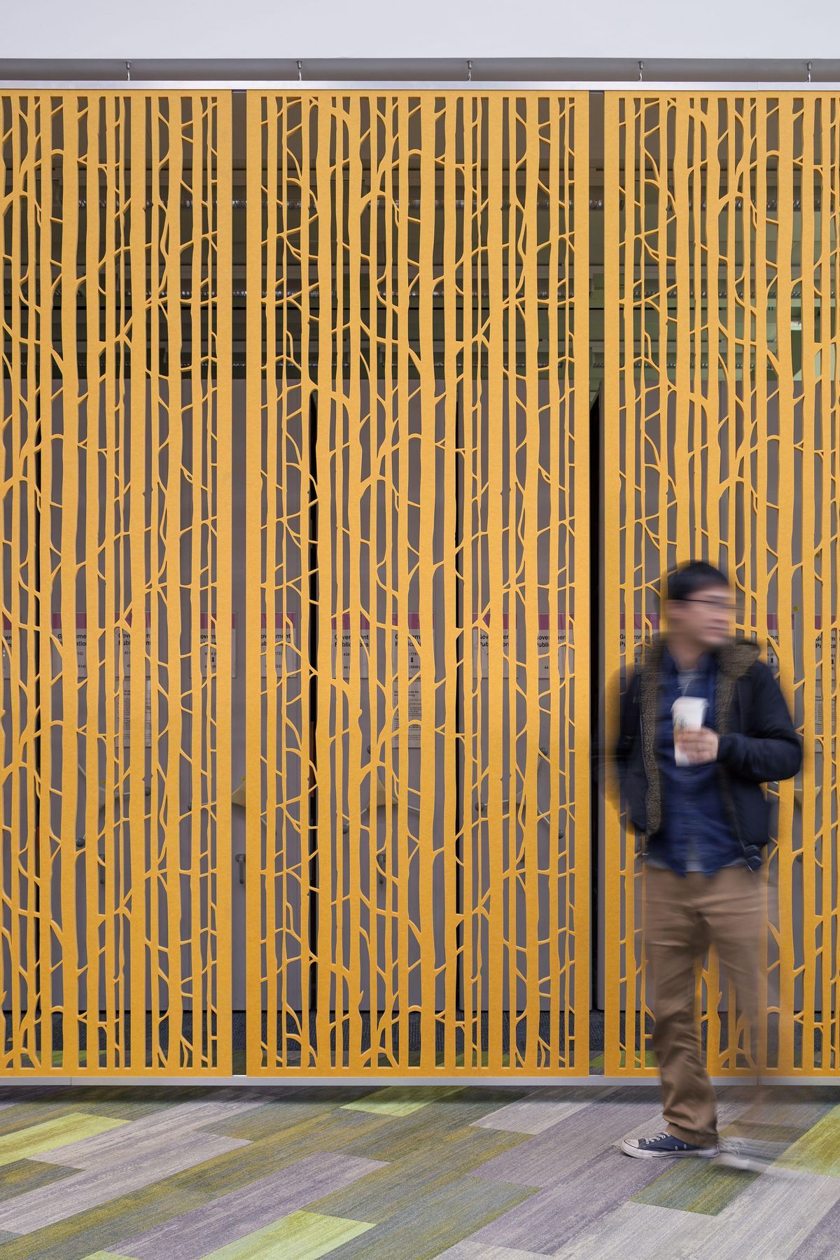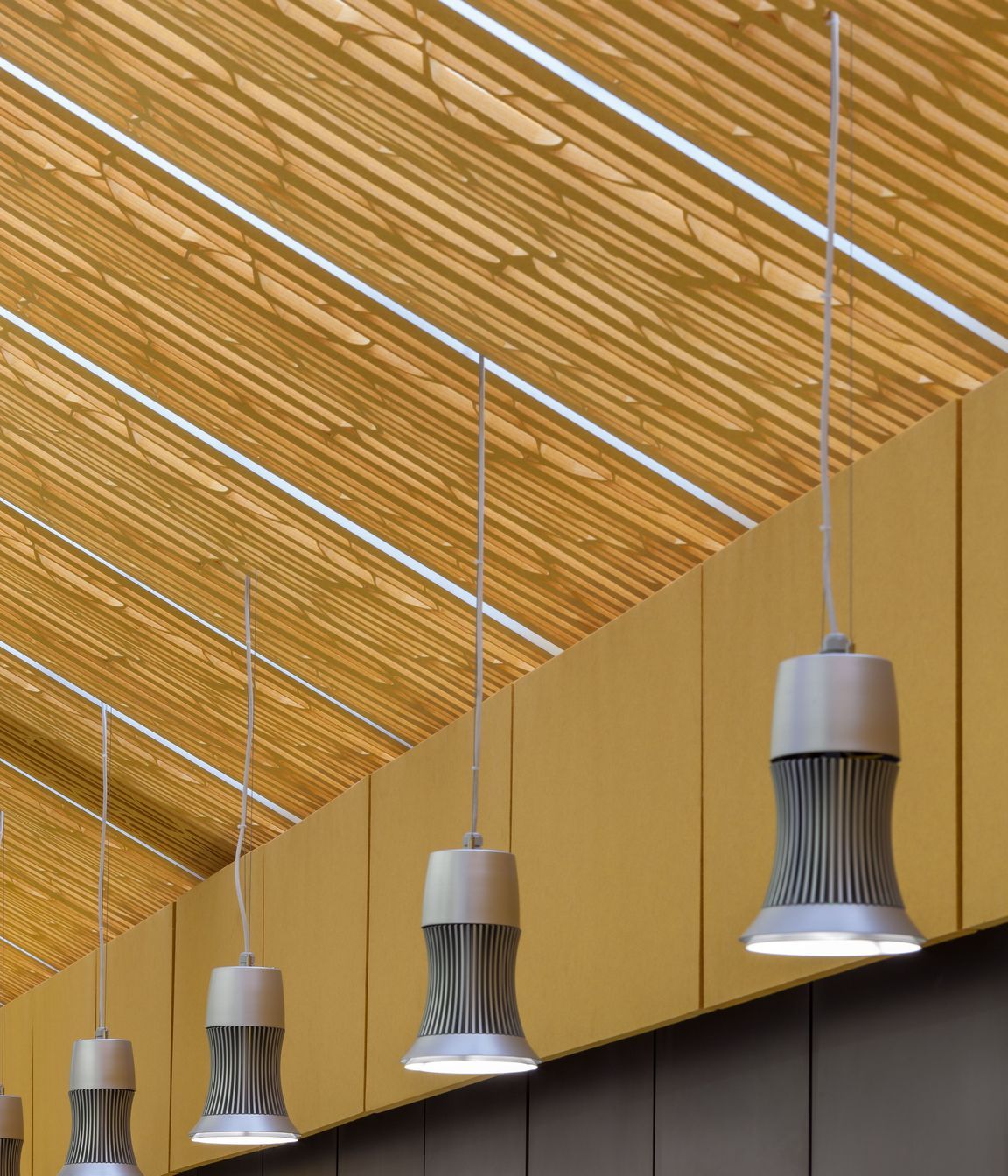 Our acoustic solutions are designed to reduce and control reverberation and echo in building interiors, creating comfortable, acoustically balanced environments. The Autex Acoustics range offers a variety of treatments including wallcoverings, panels, baffles, and screens—easily customised to fit the requirements of your space.