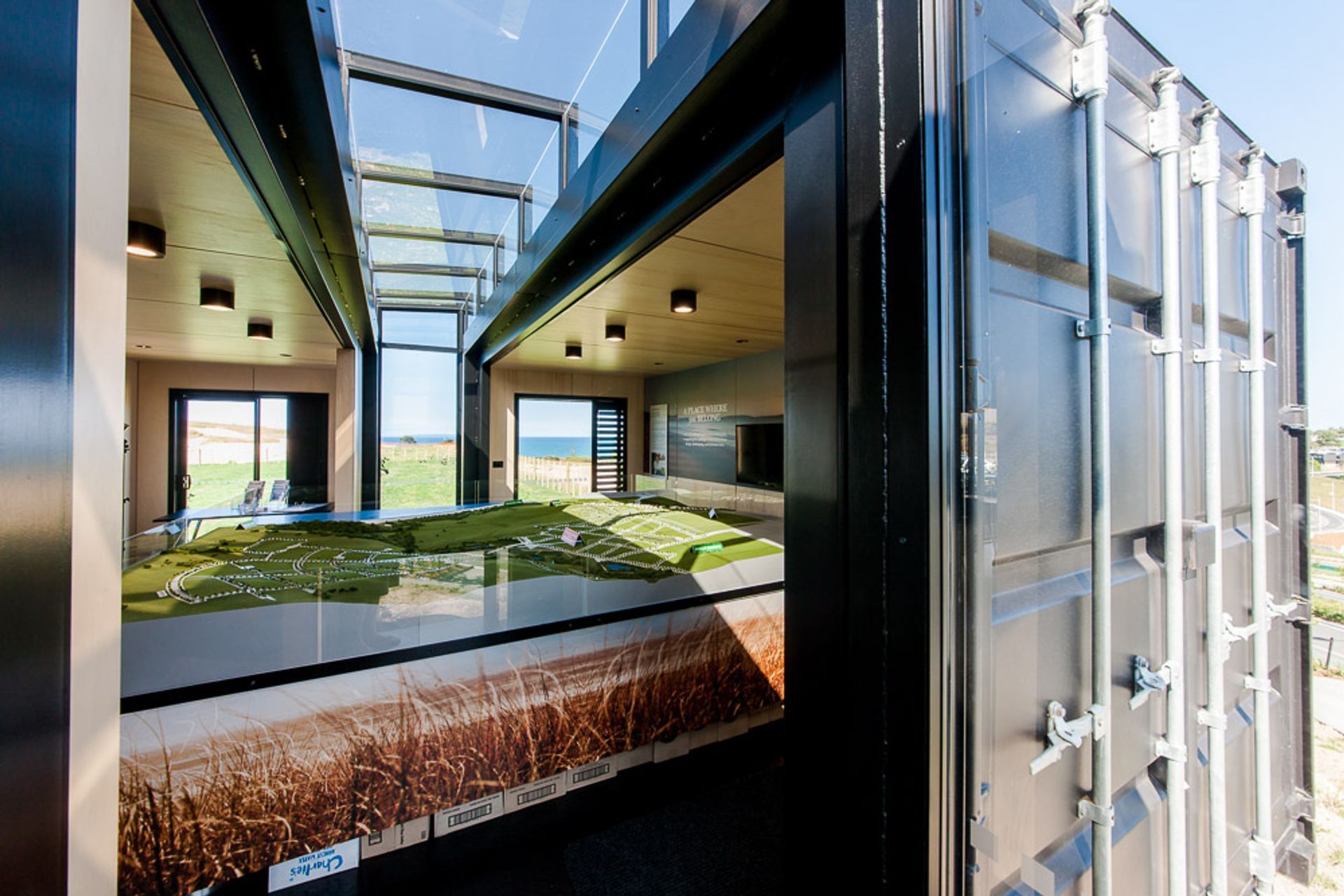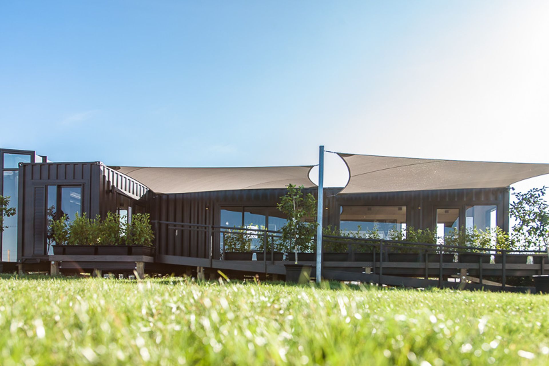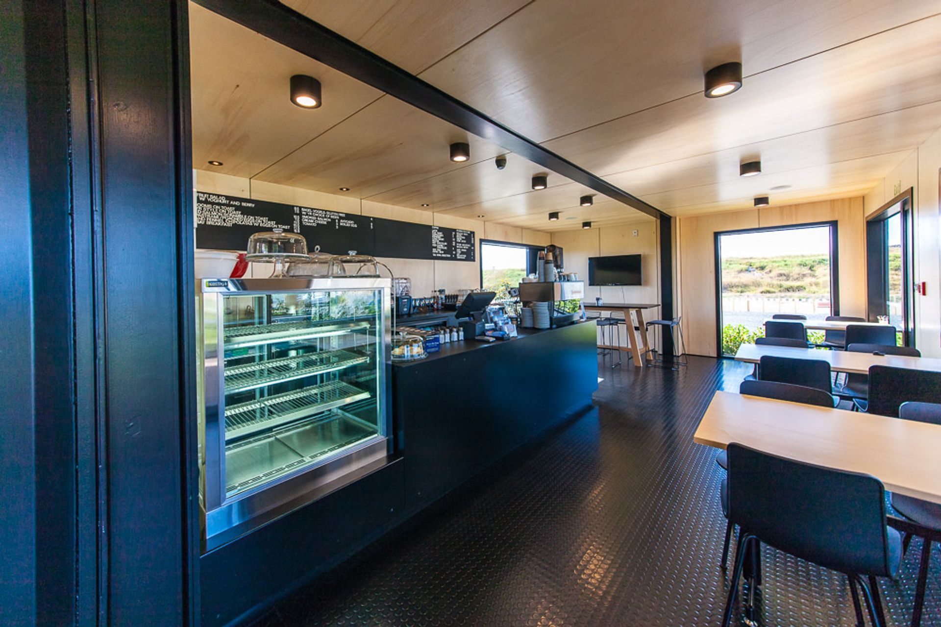 ArchiPro Project Summary - Innovative shipping container cafe and sales office in Long Bay, Auckland, featuring a commercial kitchen, panoramic views, and a flexible design for relocation, crafted by Cubular and designed to embrace its industrial aesthetic.