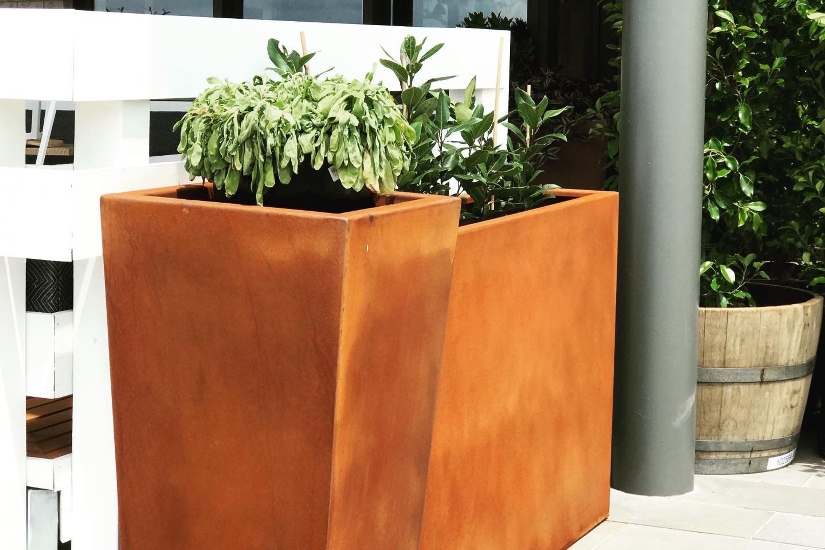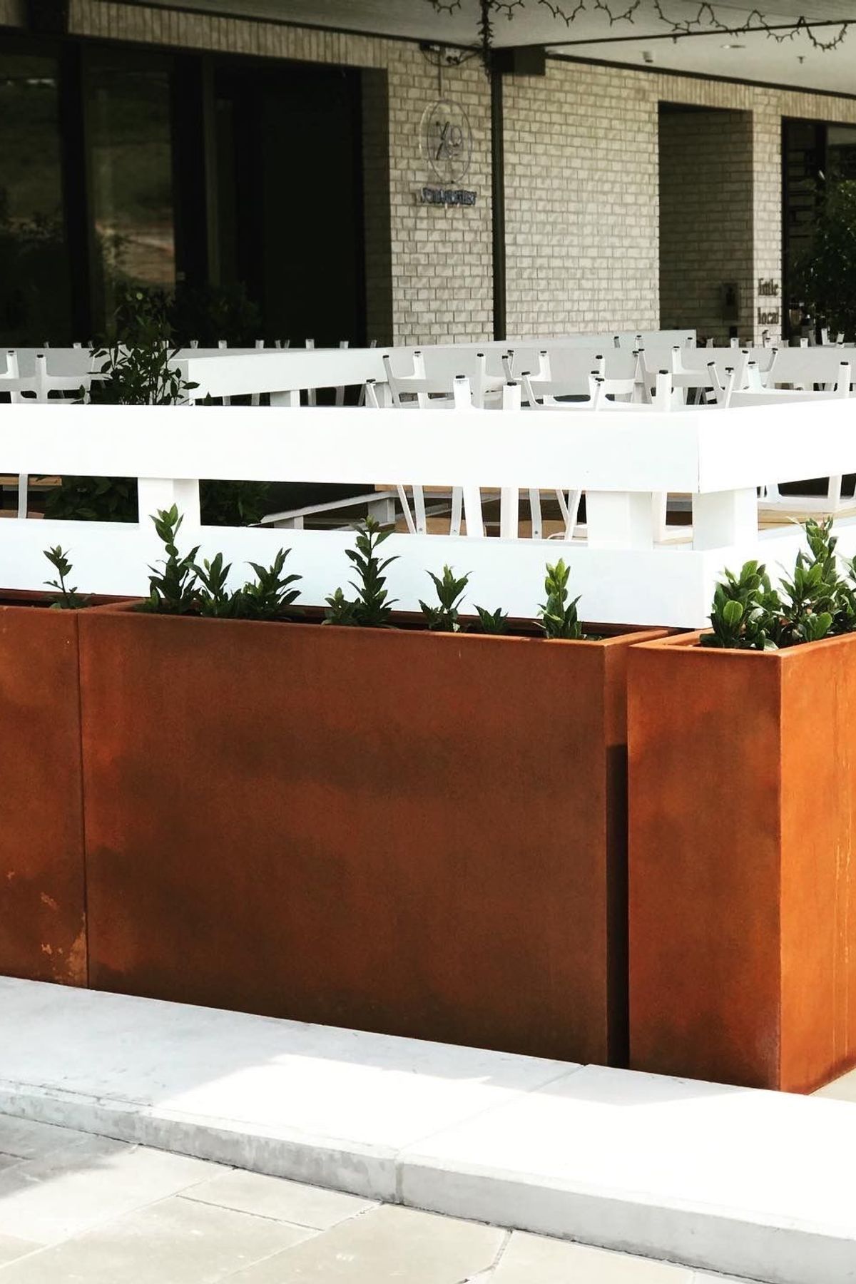 ArchiPro Project Summary - Long Bay's Industrial-Style Outdoor Eatery Transformed into a Luxury Oasis with Corten Steel Planters, Completed in 2021 by Tiny Anvil.