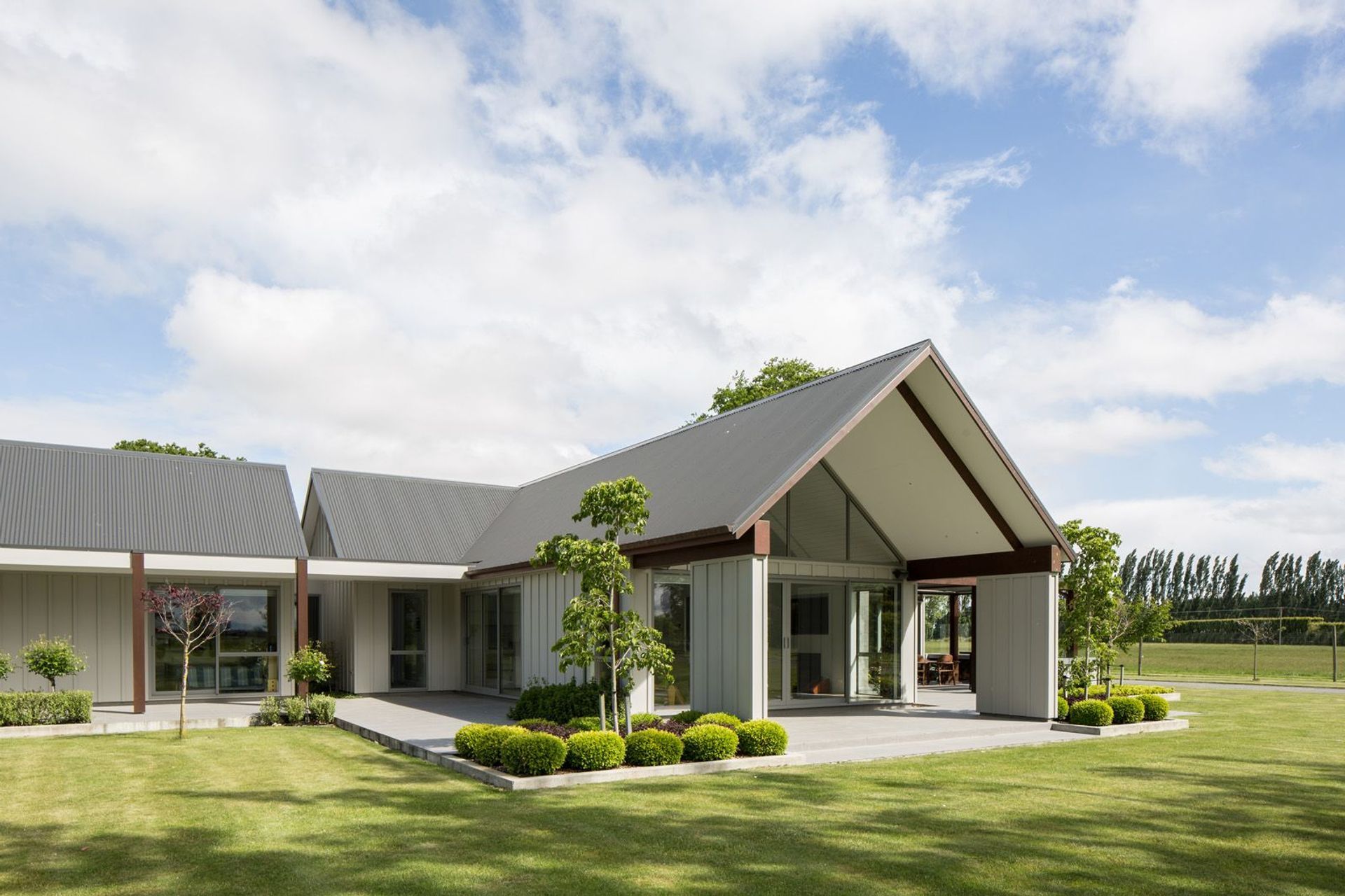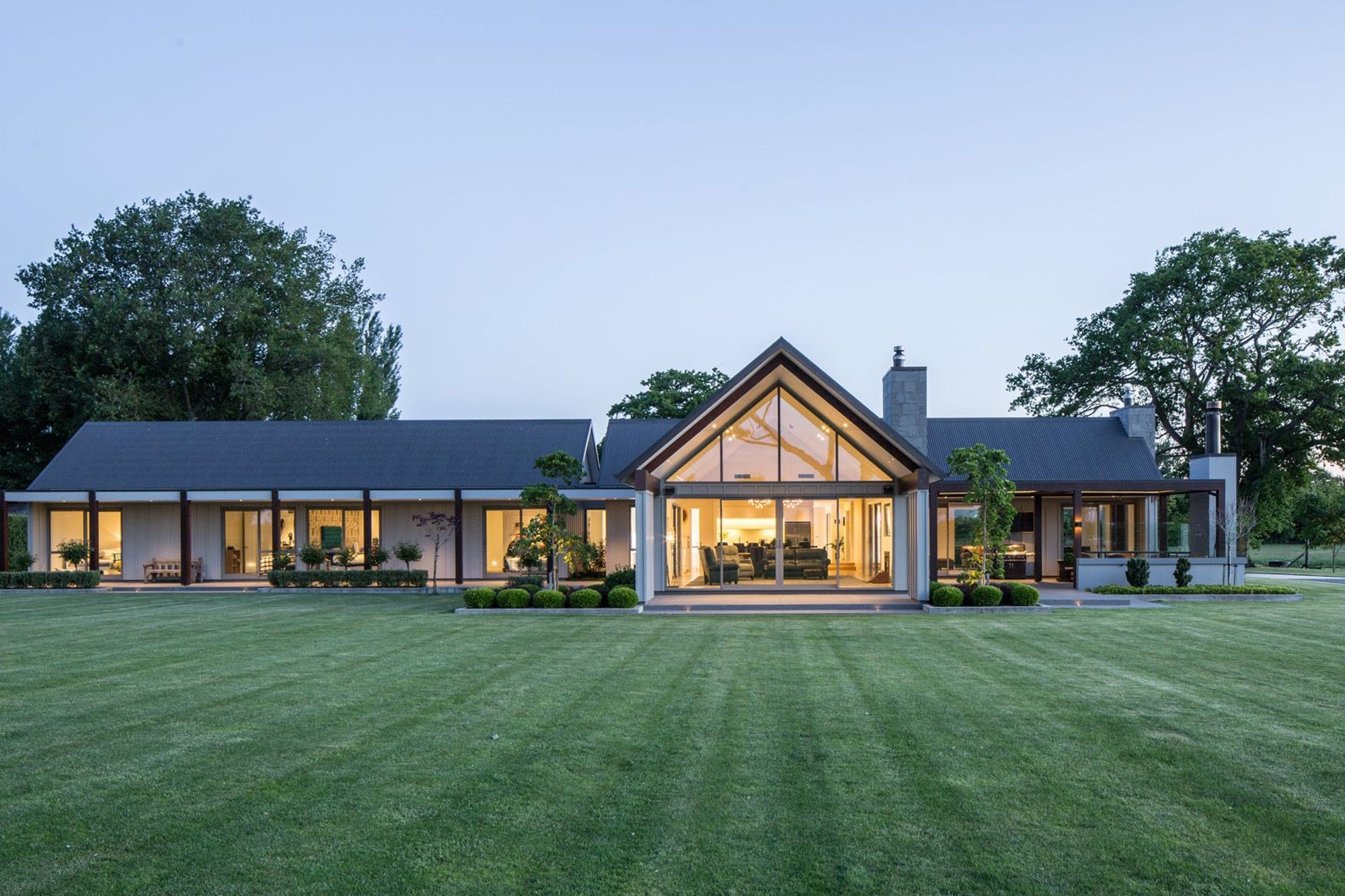 ArchiPro Project Summary - Longbeach House features a series of gable wings that harmonize with its rural setting, offering open-plan living spaces that connect seamlessly to the outdoors, enhanced by extensive glazing and natural timber ceilings for a warm, inviting atmosphere.