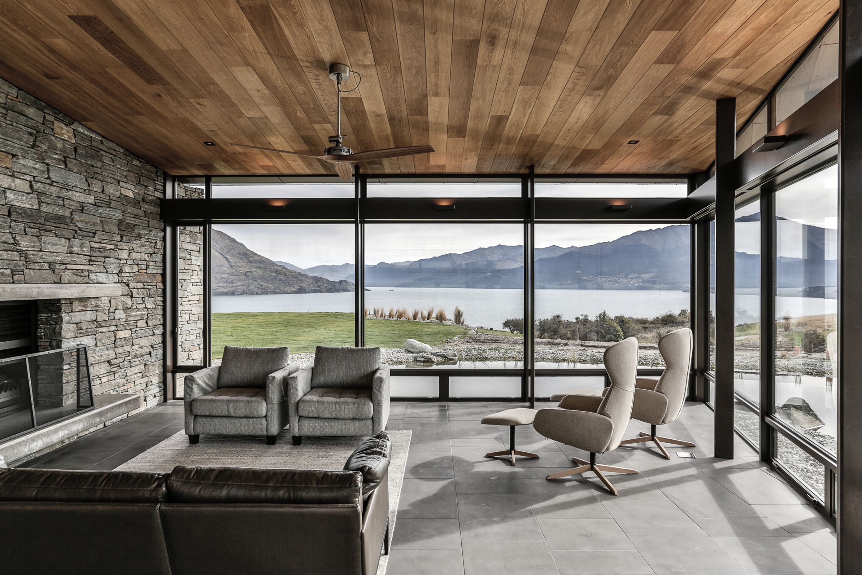 ArchiPro Project Summary - Two distinct buildings harmoniously integrated into the Jacks Point Preserve, featuring modern design elements and stunning views of Lake Wakatipu and the Remarkables Mountain range.