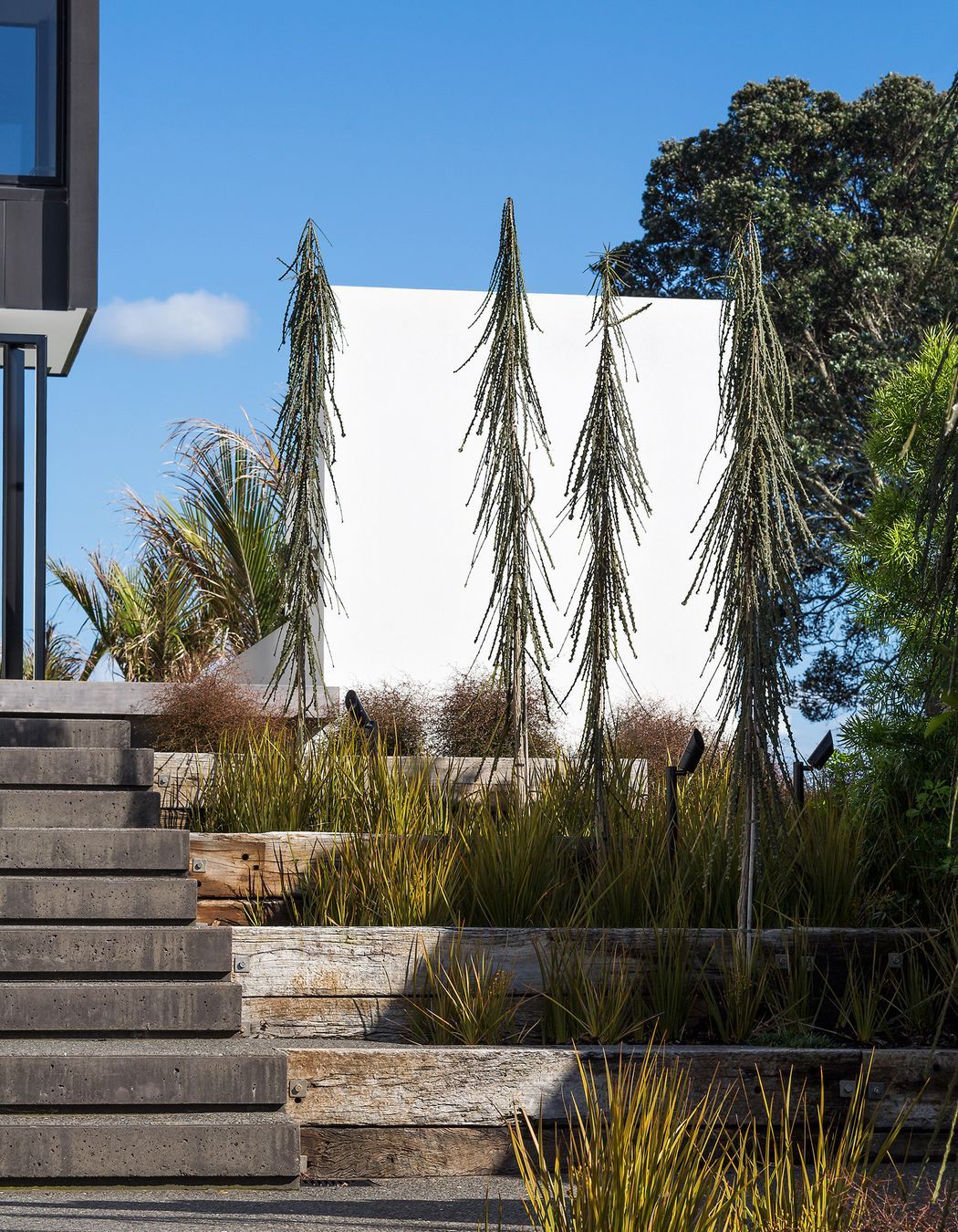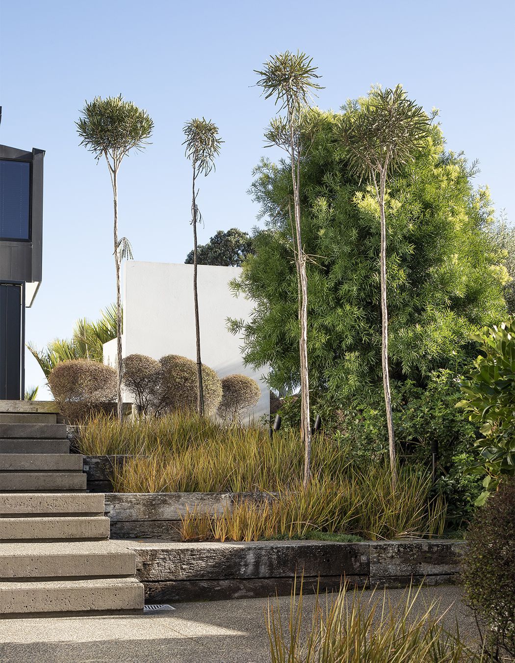 ArchiPro Project Summary - A contemporary landscape design featuring native plants, harmoniously integrated with the architecture of Remuera House, showcasing award-winning excellence in landscape design, construction, and horticulture.